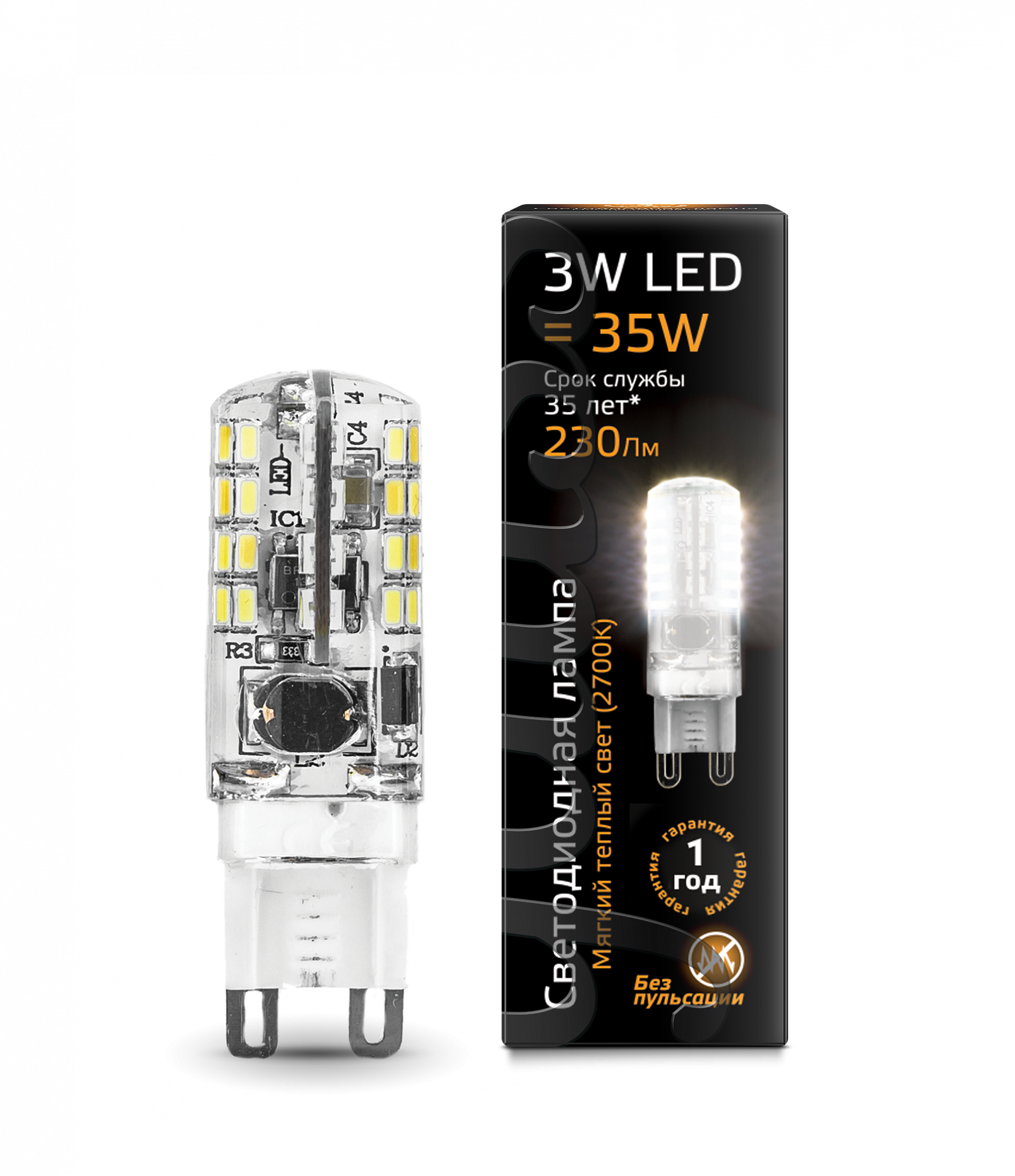 Лампа Gauss G9 AC185-265V 3,5W 460lm 3000K LED 107009105