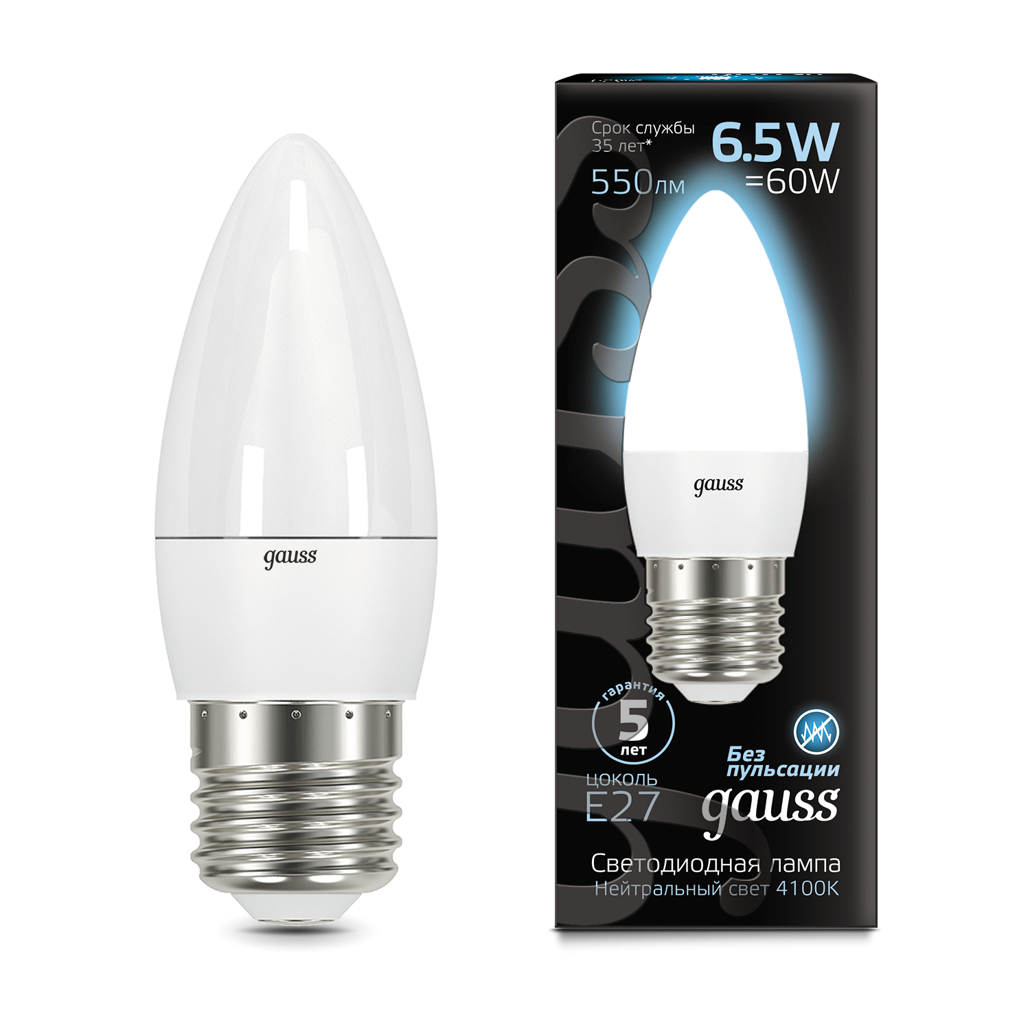 Лампа Gauss Свеча 6.5W 550lm 4100К E27 LED 103102207 (10 шт)