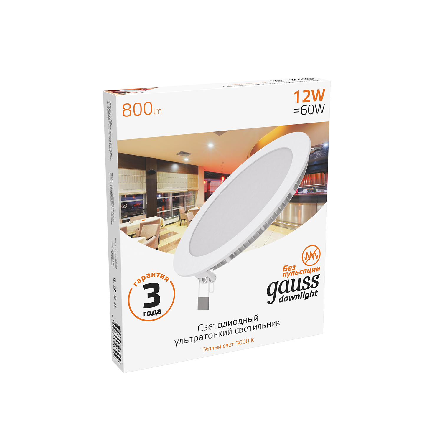 Светильник Gauss Slim круг 18W 1200lm 3000K 180-265V LED 939111118