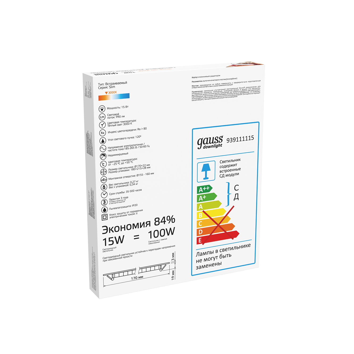 • Соответствие лампы накаливания, Вт ? Приблизительный перерасчет, показывающий сколько света дает диодный источник если бы он был лампой накаливания) 120