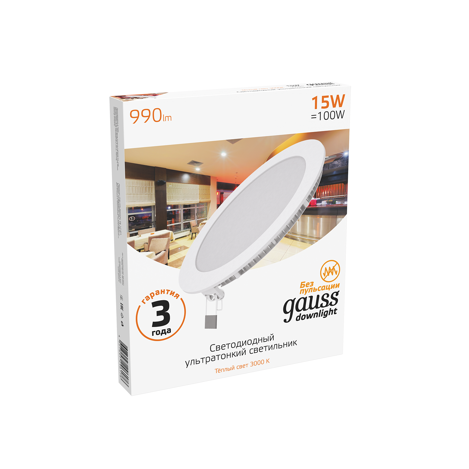 Светильник Gauss Slim круг 18W 1200lm 3000K 180-265V LED 939111118