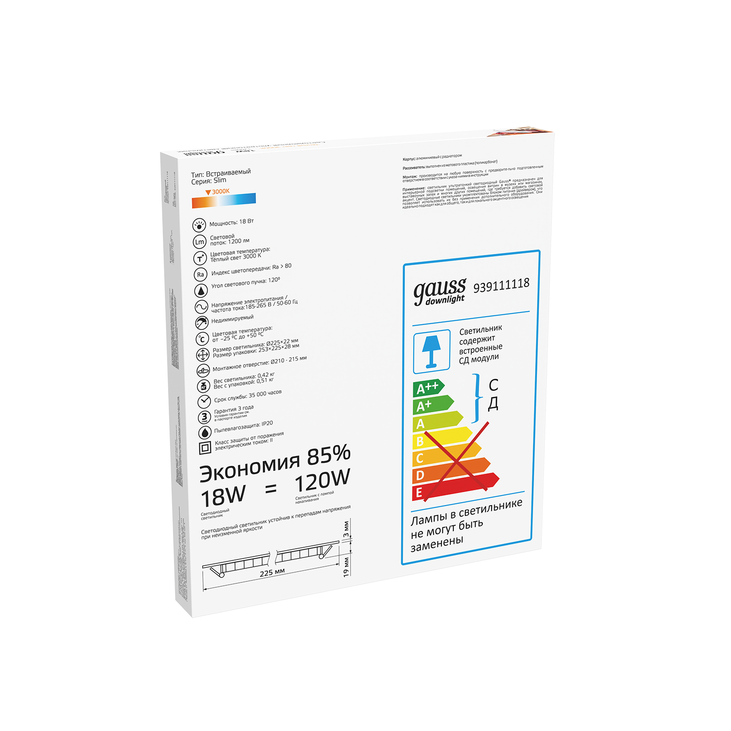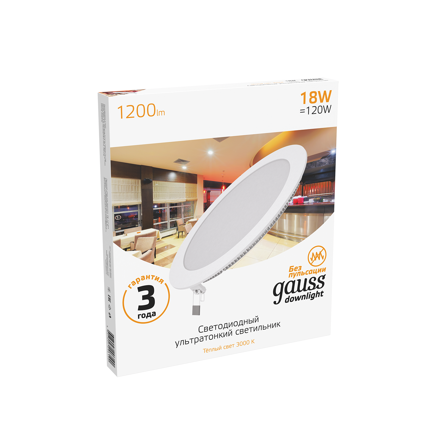 Светильник Gauss Slim круг 18W 1560lm 6500K 180-265V LED 939111318