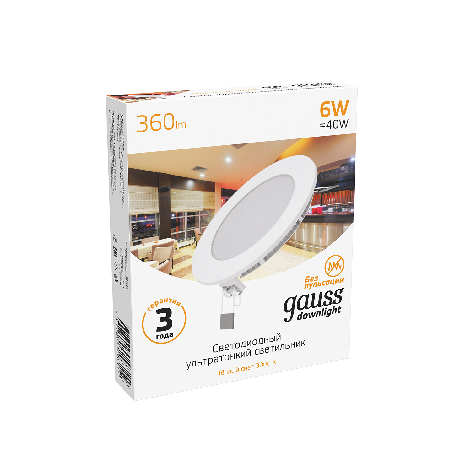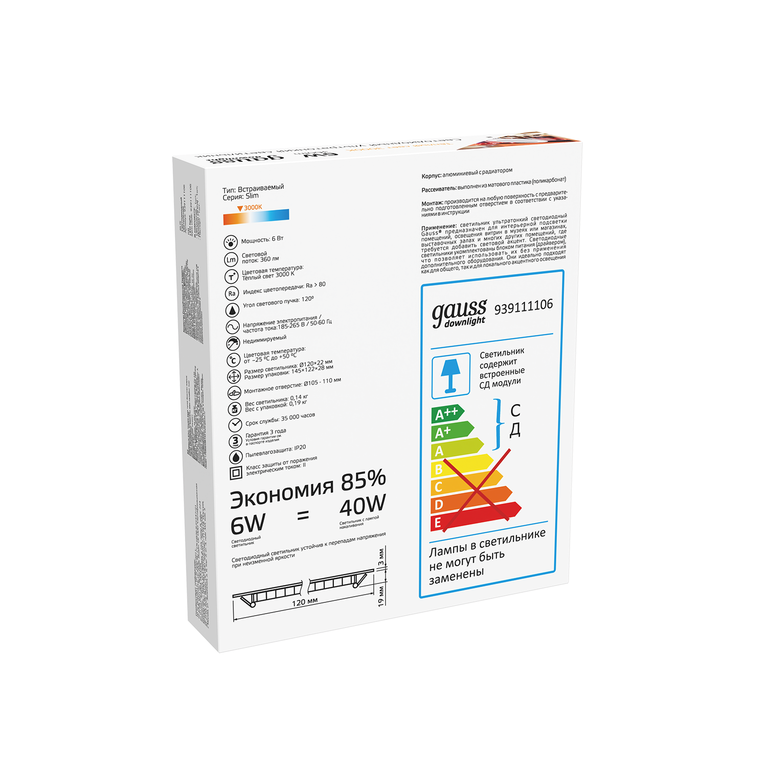 Светильник Gauss Slim круг 6W 460lm 6500K 180-265V LED 939111306