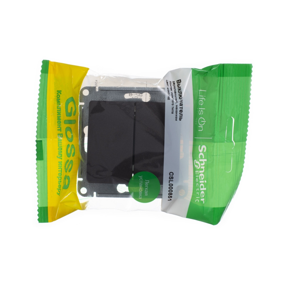 Механизм Schneider Electric Glossa (цвет шоколад) выключателя 2-клавишного подходит для сетей 250 В, на ток 10 А.