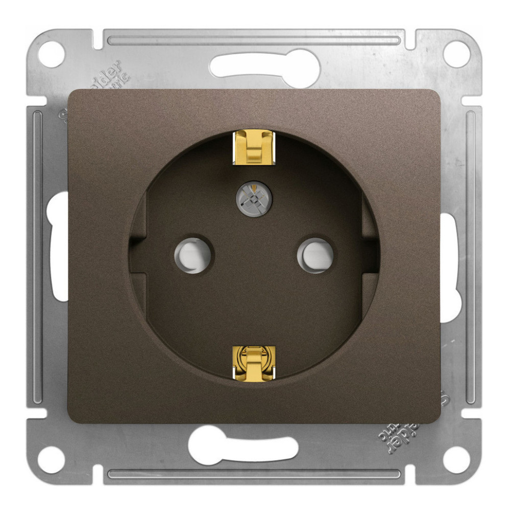 Механизм Schneider Electric Glossa (цвет шоколад) розетки одинарной с заземлением и шторками подходит для сетей 250 В, на ток 16 А.- Заземляющий контакт обеспечивает дополнительную защиту от удара электрическим током. При наличии заземления электрический потенциал уходит в землю, защищая человека.- Выполнен из материала PС+ASA, стойкого к УФ-излучению и появлению царапин.- Эргономичные клеммы розеток расположены в один ряд