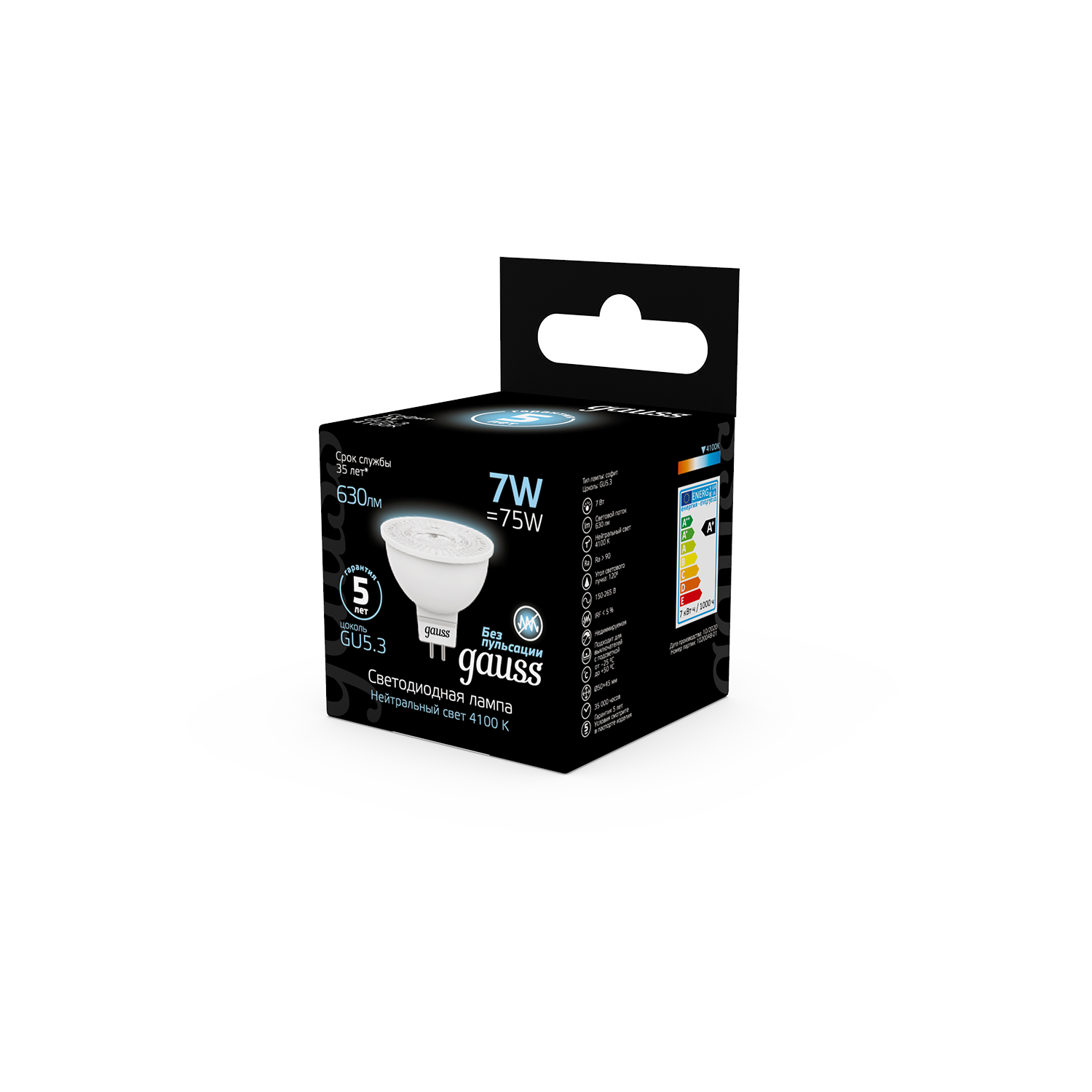 Лампа Gauss MR16 7W 630lm 4100K GU10 LED 101506207 (5 шт)