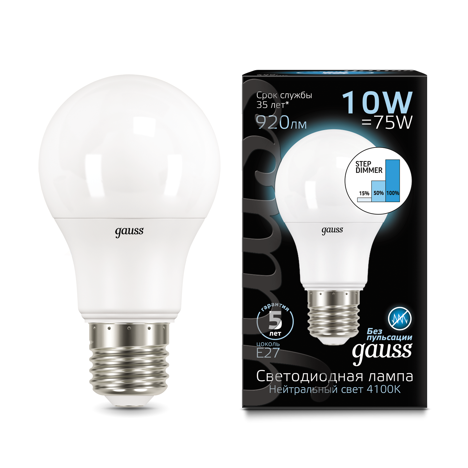 Лампа Gauss A60 10W 920lm 6500K E27 LED 102502310