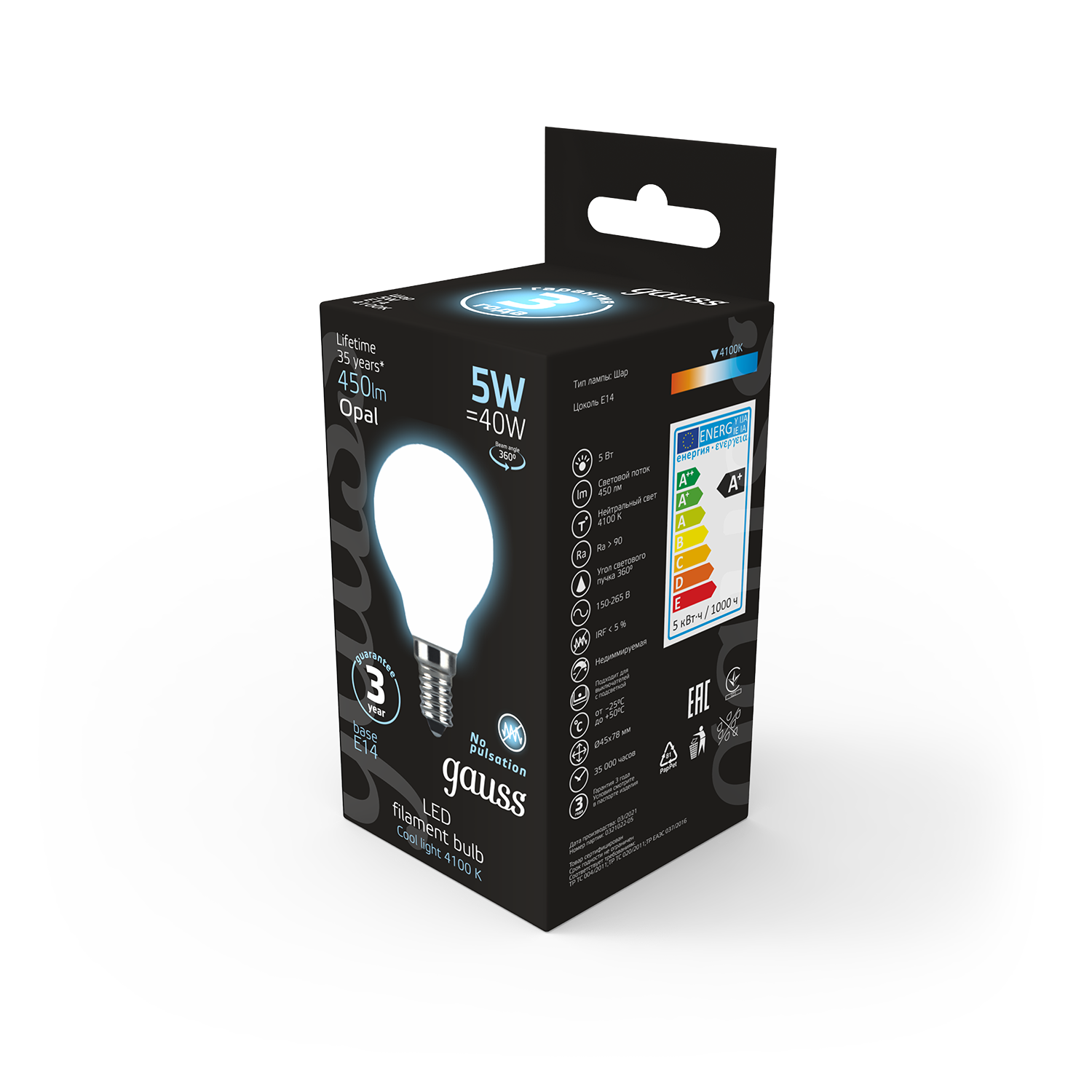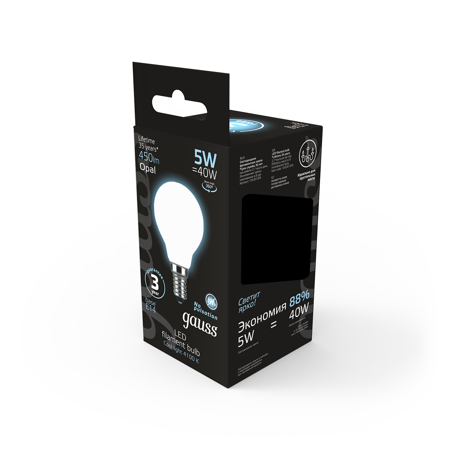 • Форма лампочки Шарообразная (тип G)
