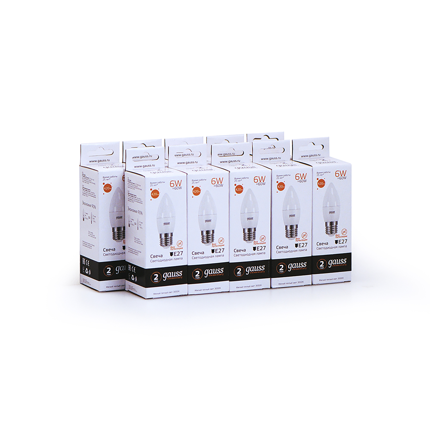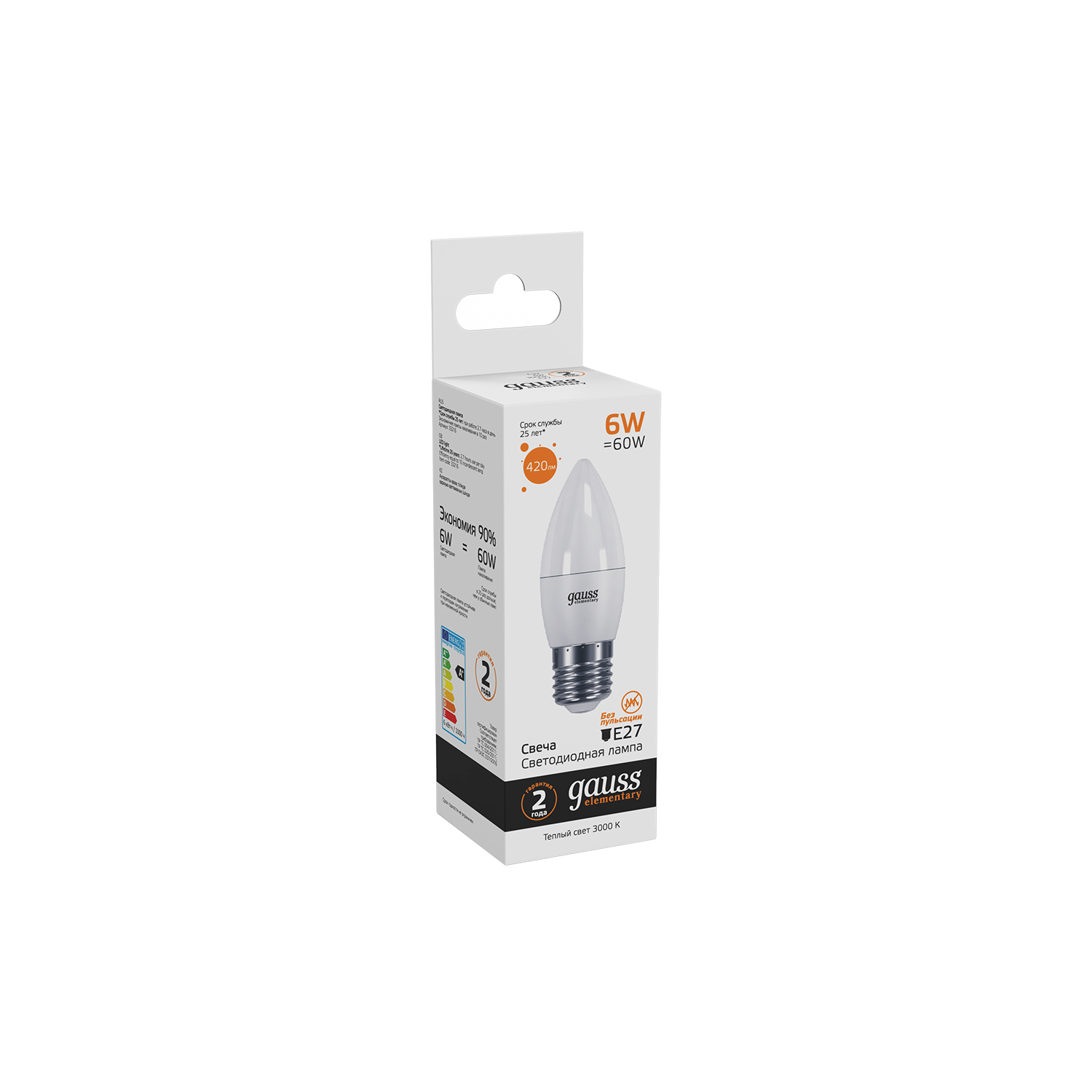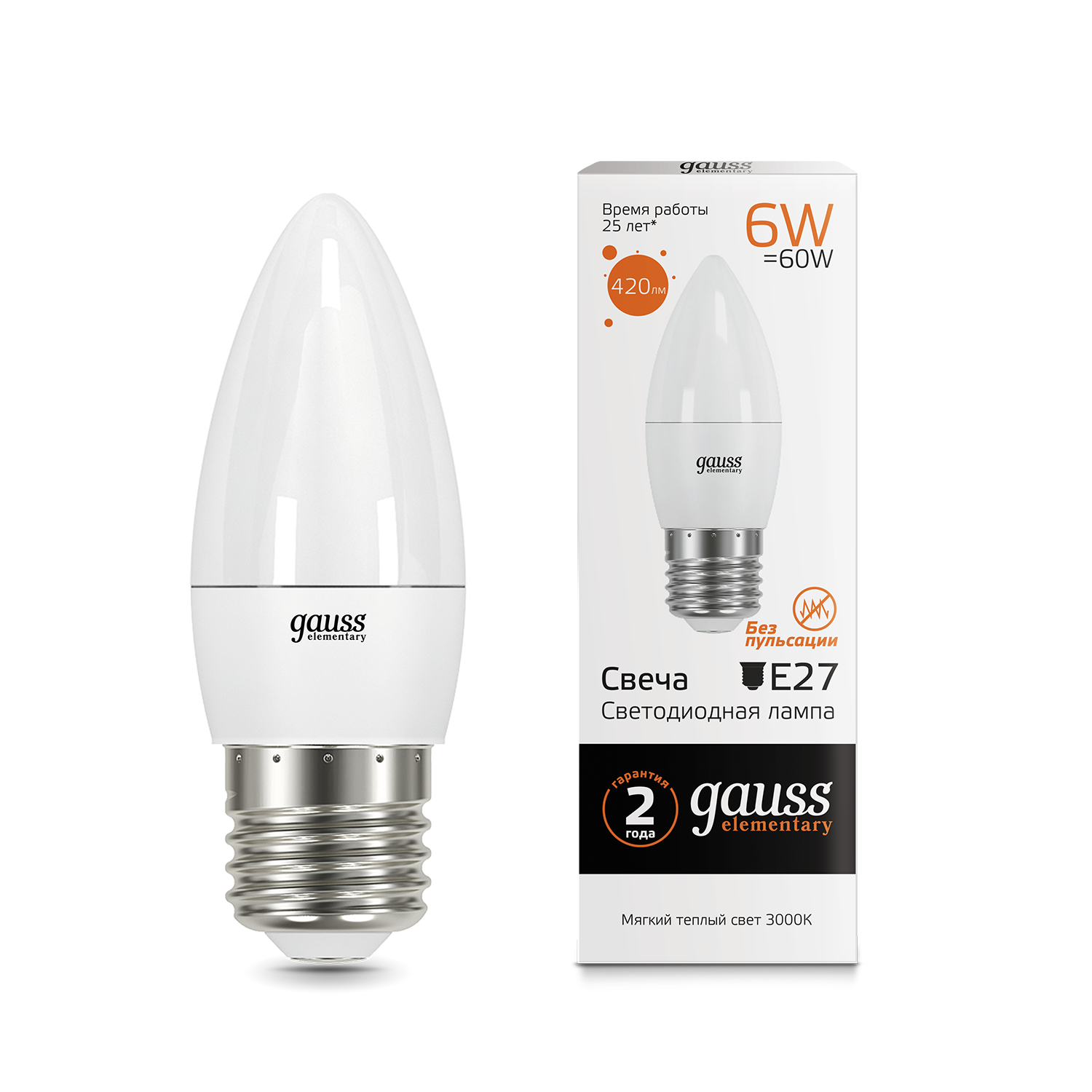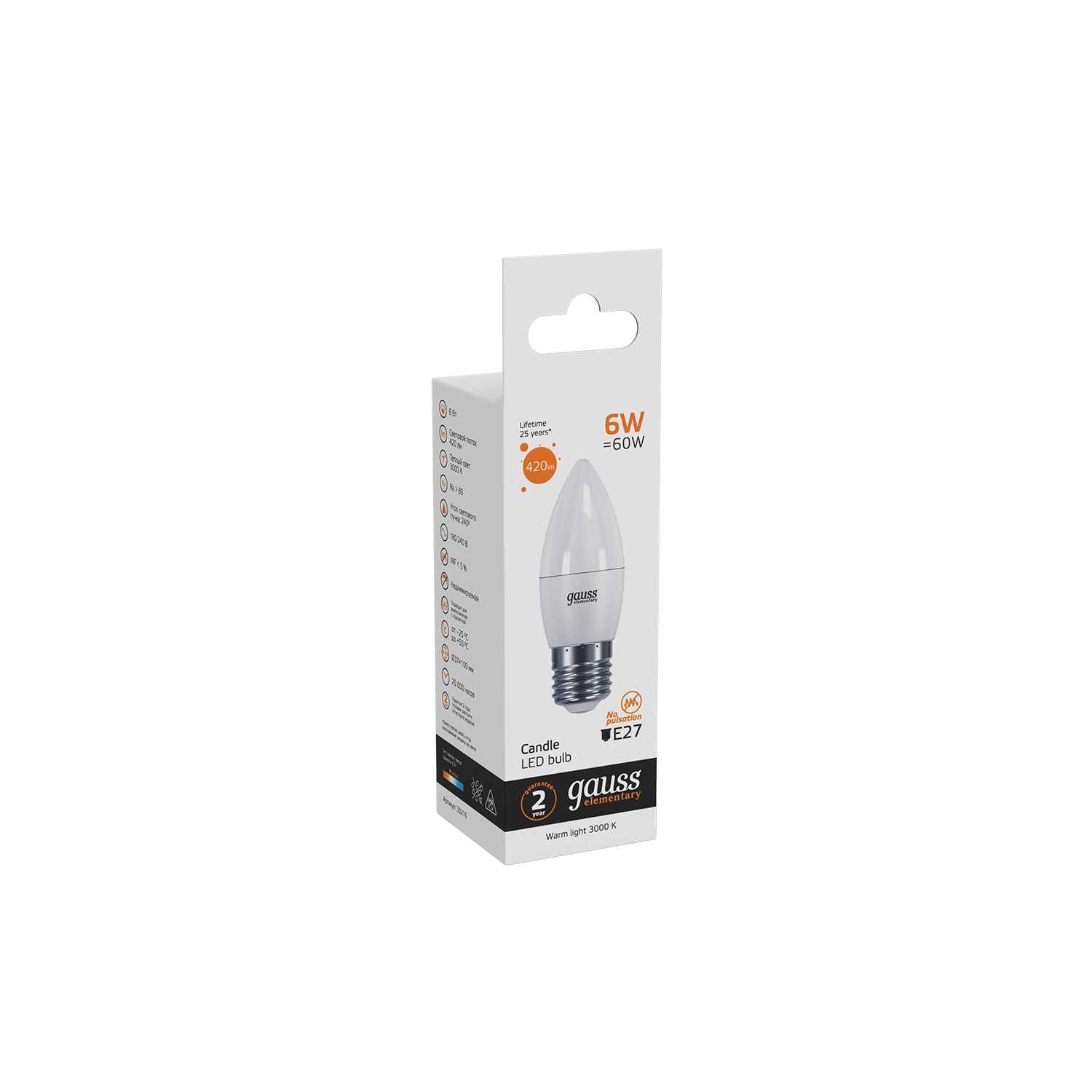 Лампа Gauss Elementary Свеча 6W 450lm 4100K Е27 LED 33226 (20 шт)
