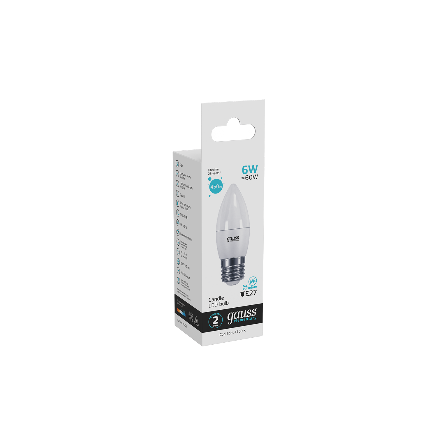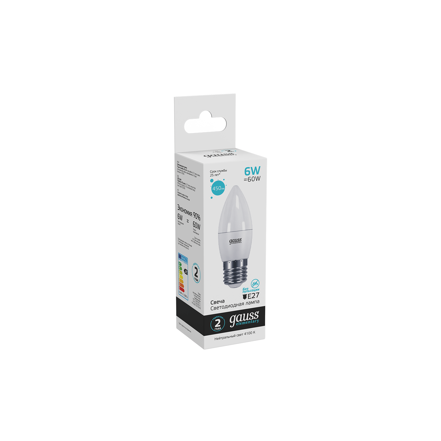 Лампа Gauss Elementary Свеча 6W 450lm 4100K Е27 LED 33226 (2 шт)
