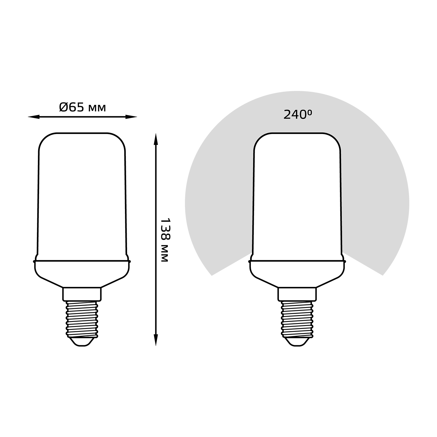 Лампа Gauss T65 5W 20-80lm 1500K E14 Flame LED 157401105 (2 шт)