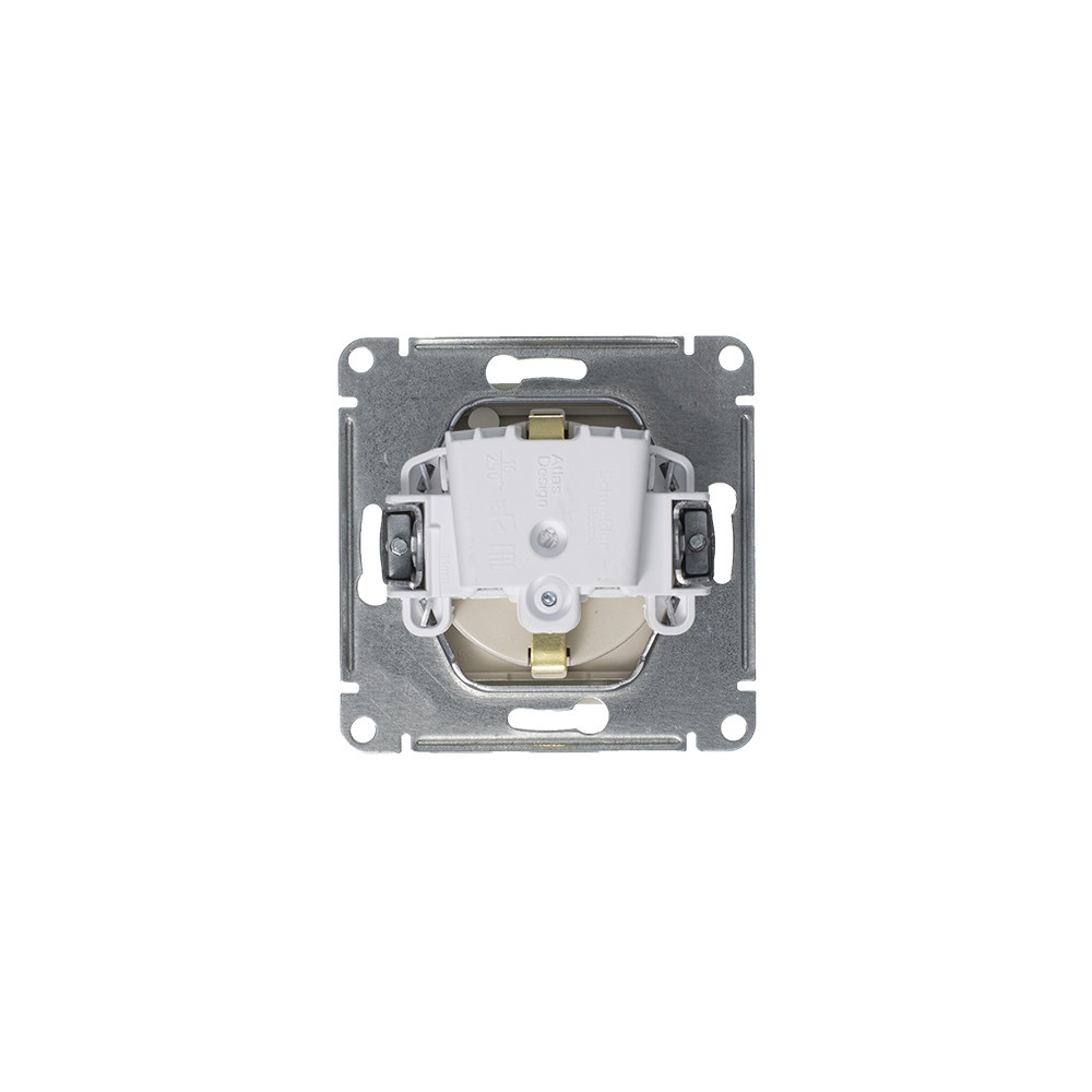 Механизм Schneider Electric AtlasDesign (цвет алюминий) розетки одинарной с заземлением, шторками и крышкой подходит для сетей 250 В, на ток 16 А.