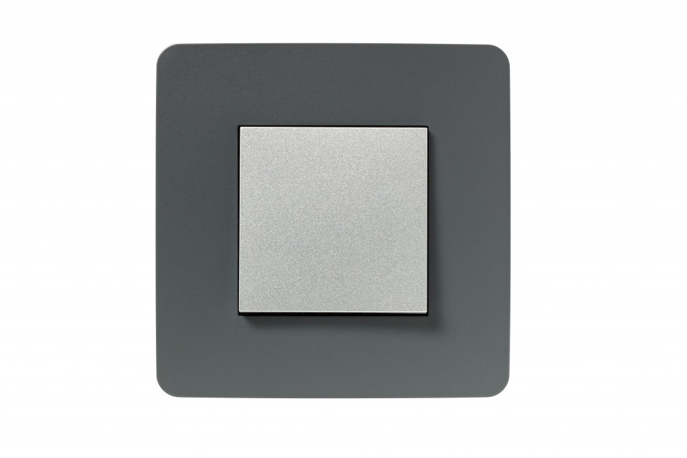 Рамка Schneider Electric UNICA STUDIO Color (дымчато-серый) одинарная с задней панелью цвета антрацит.
