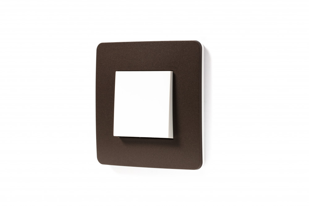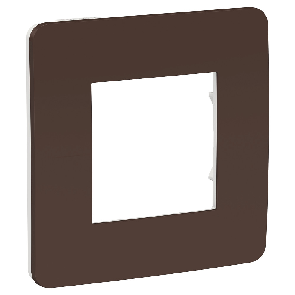 Рамка Schneider Electric UNICA STUDIO Color (шоколад) одинарная с задней панелью цвета белый.