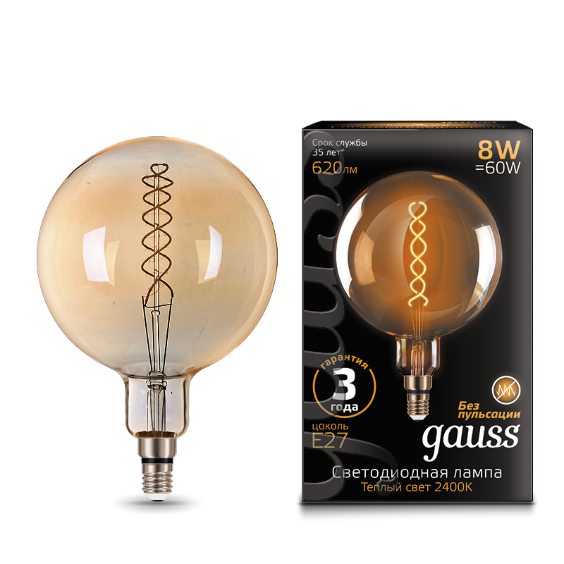 Лампа Gauss Filament G200 14W 1170lm 4100К Е27 LED 153202214-D (3 шт)