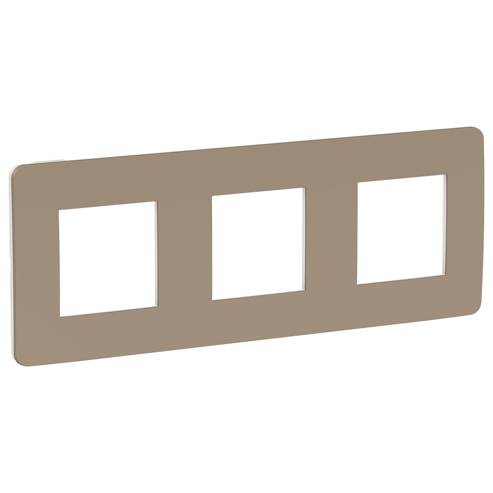 Рамка Schneider Electric UNICA STUDIO Color (песочный) трёхместная с задней панелью цвета белый.