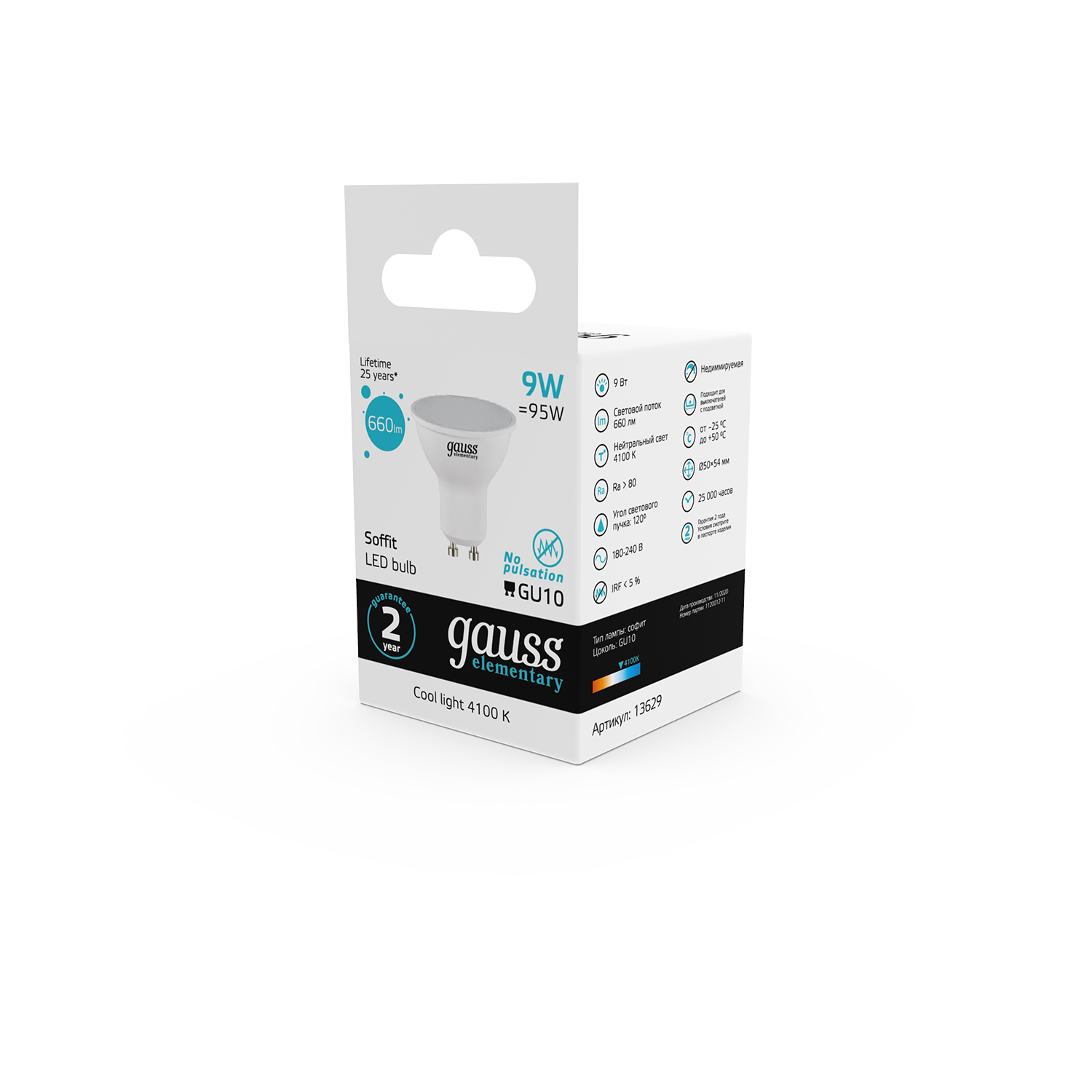 Лампа Gauss Elementary MR16 11W 850lm 3000K GU5.3 LED 13511 (2 шт)
