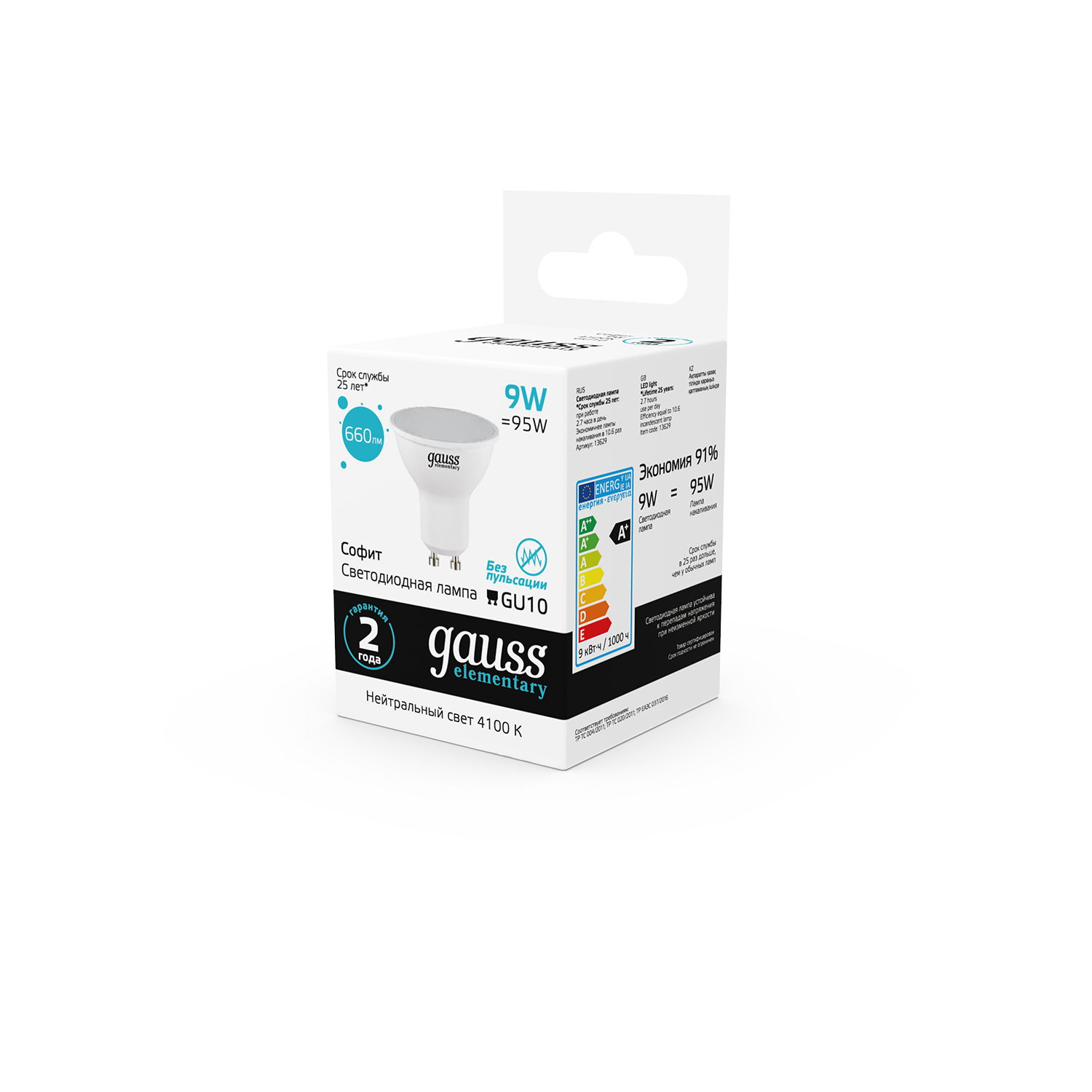 Лампа Gauss Elementary MR16 11W 850lm 3000K GU5.3 LED  13511 (10 шт)