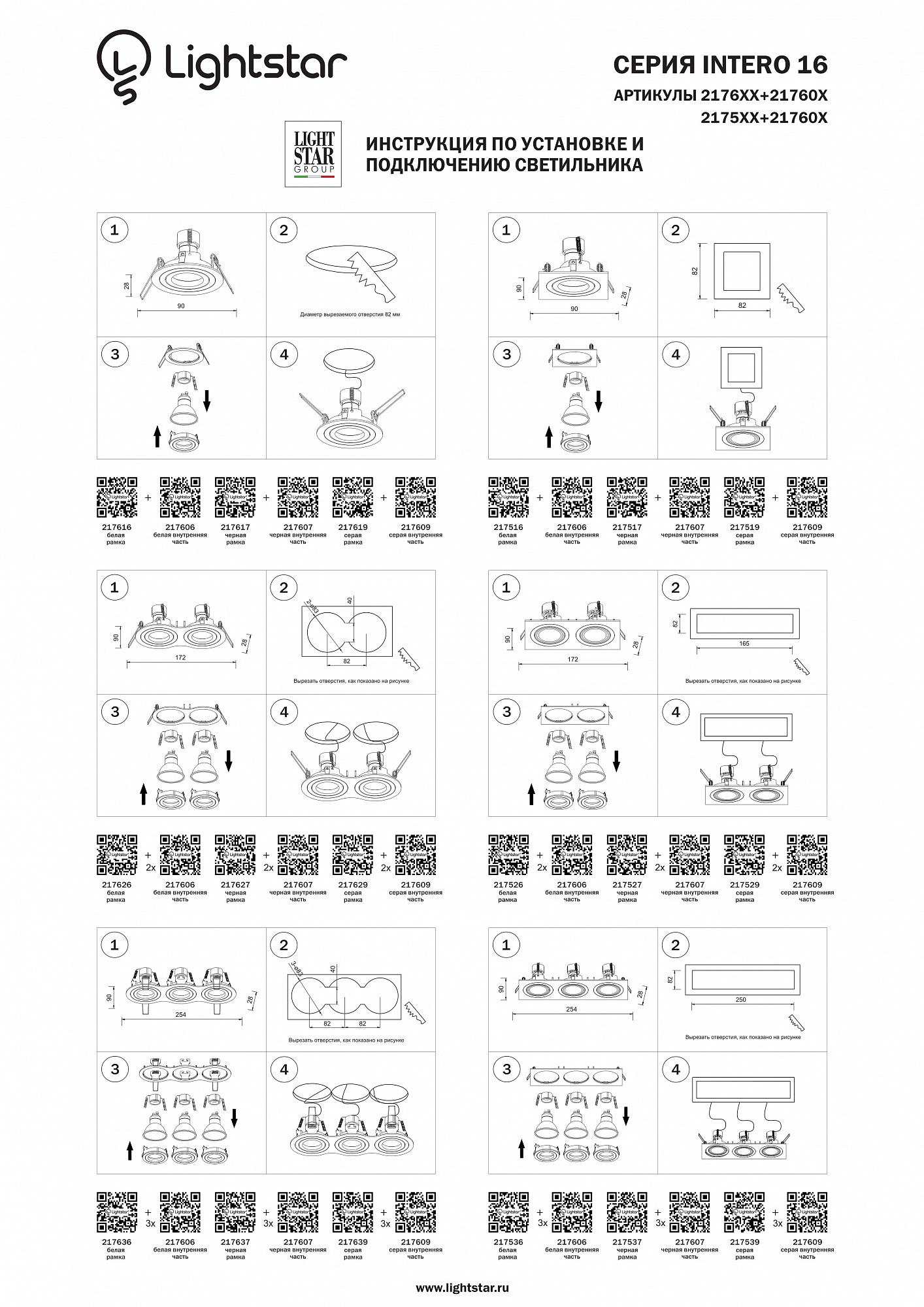 Встраиваемый светильник Lightstar Intero 16 (217637+217609+217607+217609) i637090709