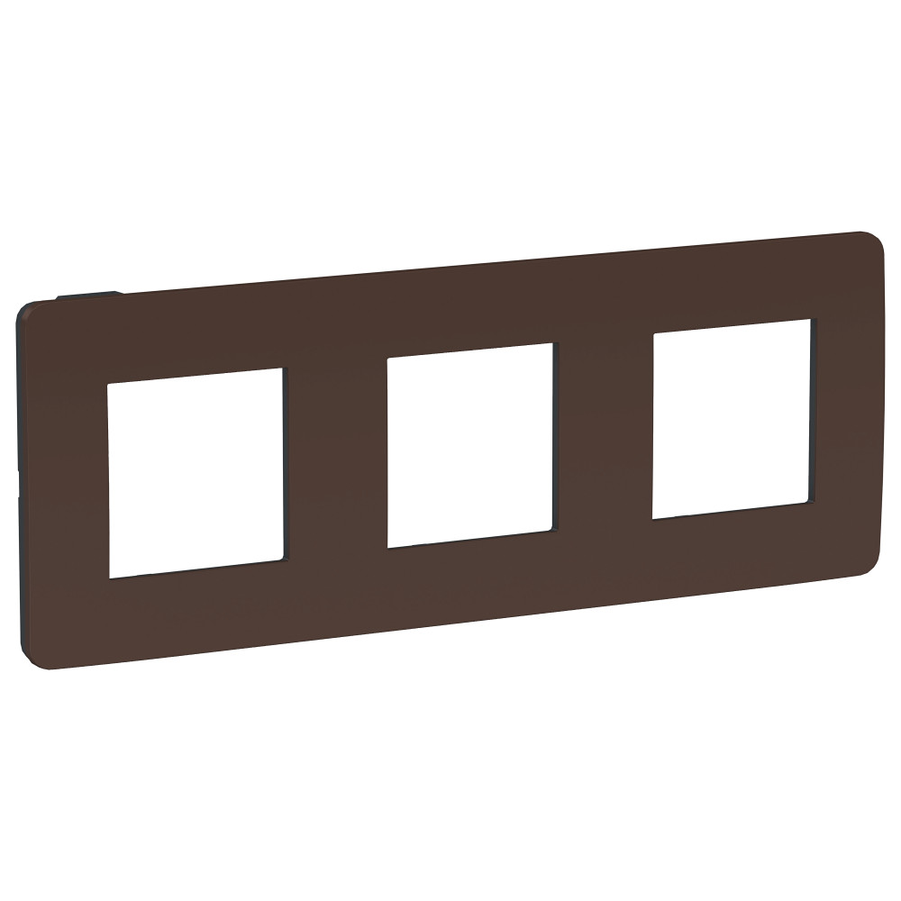 Рамка Schneider Electric UNICA STUDIO Color (шоколад) трёхместная с задней панелью цвета антрацит.