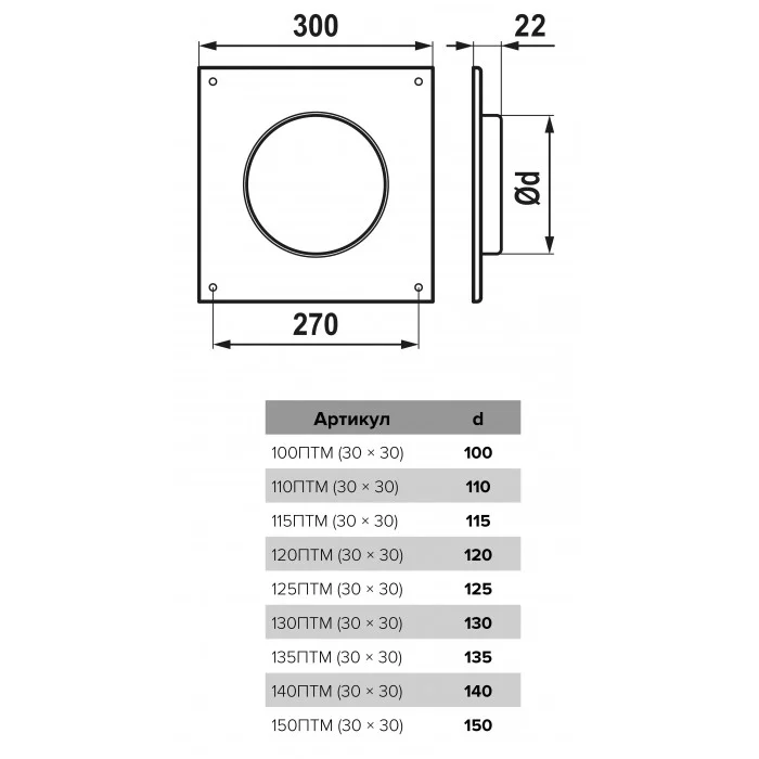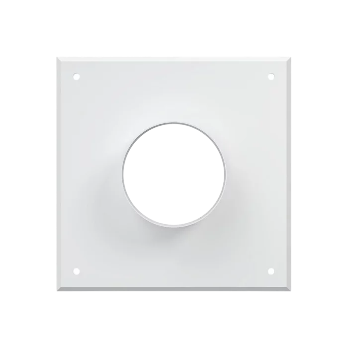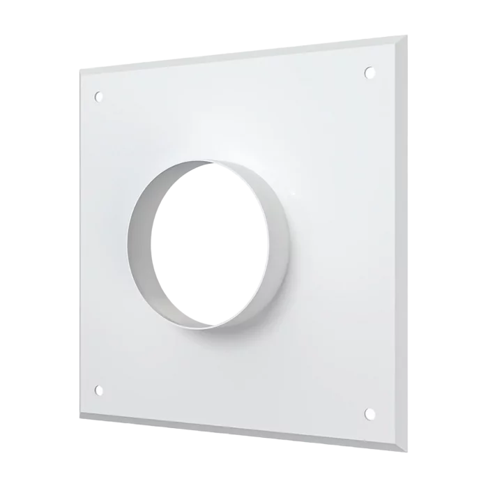 Площадка торцевая серии ПТМ (30х30) для круглых воздуховодов, от производителя ERA предназначена для присоединения приточных или вытяжных воздуховодов круглого сечения к выходу вентиляционной системы и оформления вентиляционных отверстий. Подходит для крепления круглых воздуховодов к каналу дымохода от газового оборудования различных типов. Большая и декоративная площадка 30х30 см. позволяет скрыть неровности отверстия в стене, которые могли образоваться при монтаже. Пластина изготовлена из тонколистовой стали, полимерная эмаль белого цвета. Конструкция представляет собой квадратную площадку с размерами 300х300х22 мм с круглым фланцем. Гибкие и жесткие воздуховоды соответствующего сечения соединяются напрямую. Применяются в производственных, коммерческих и жилых помещениях