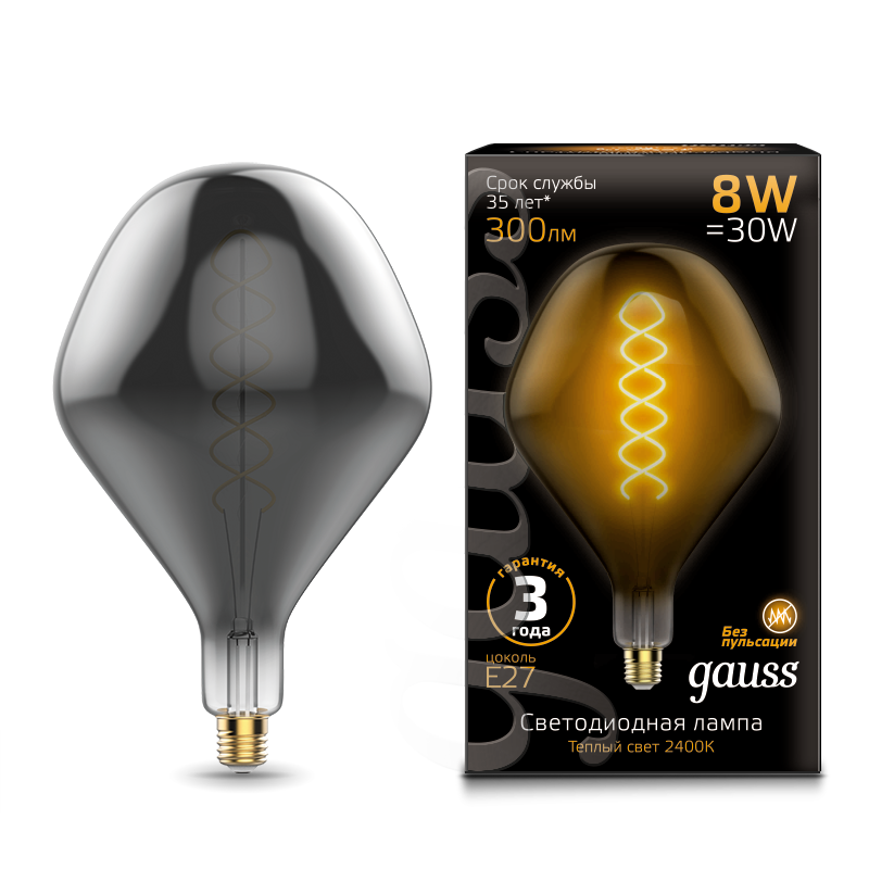 Лампа Gauss Filament А160 10W 890lm 4100К Е27 LED 179202210-D (2 шт)