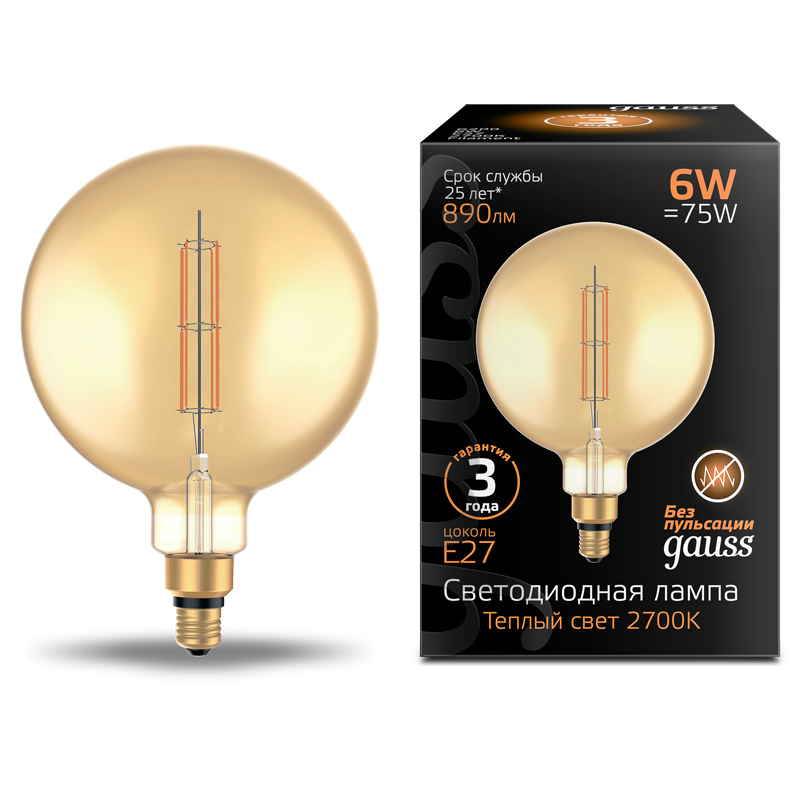 Лампа Gauss Filament G200 14W 1170lm 4100К Е27 LED 153202214-D (3 шт)