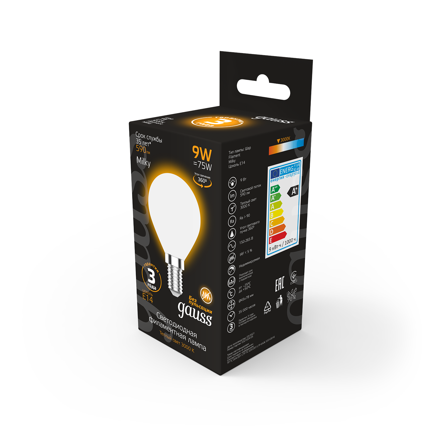 Лампа Gauss Filament А60 12W 1200lm 2700К Е27 LED 102902112 (5 шт)