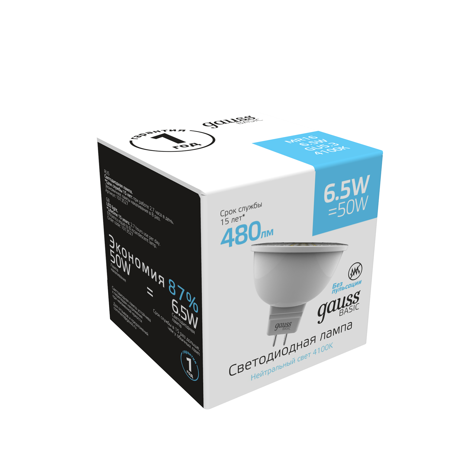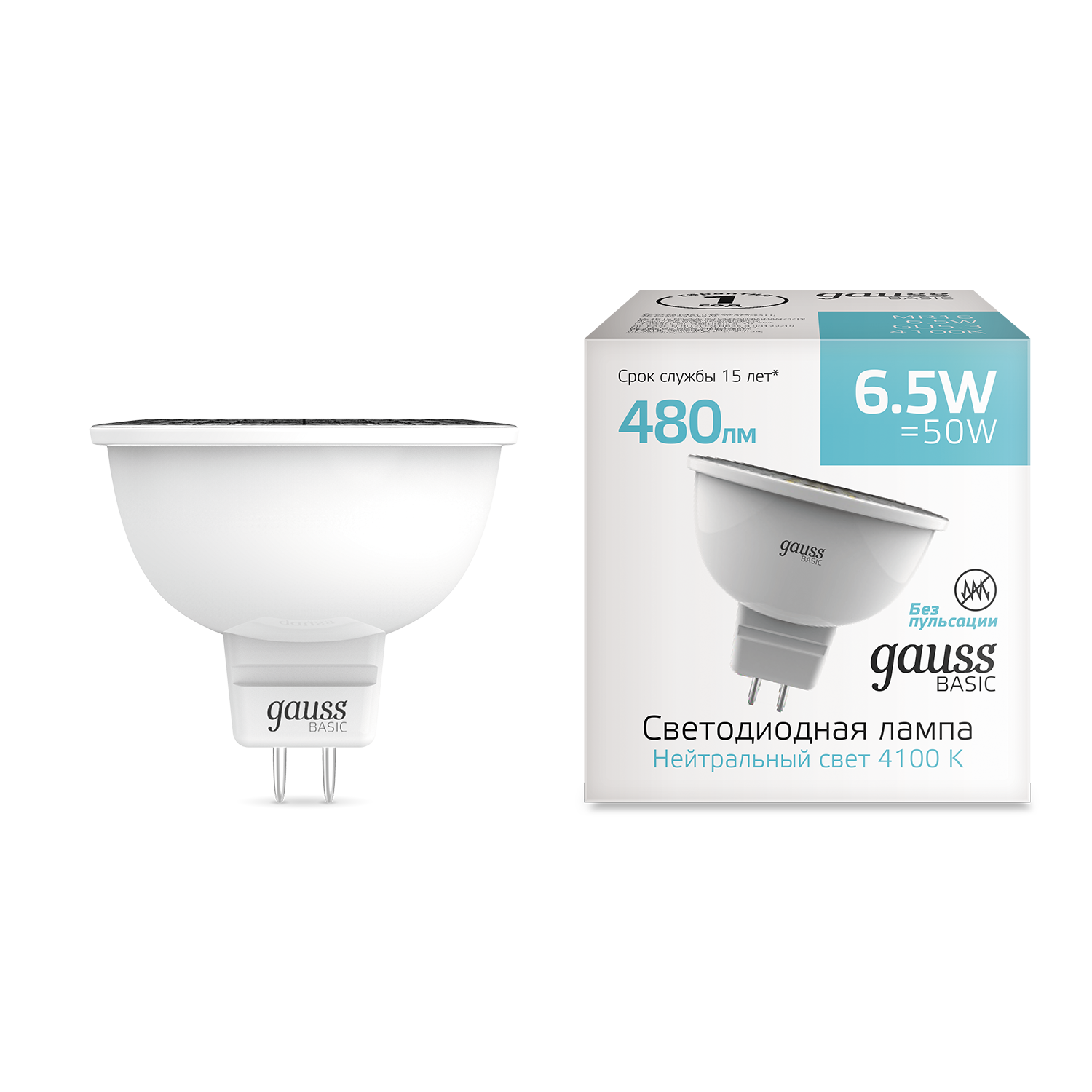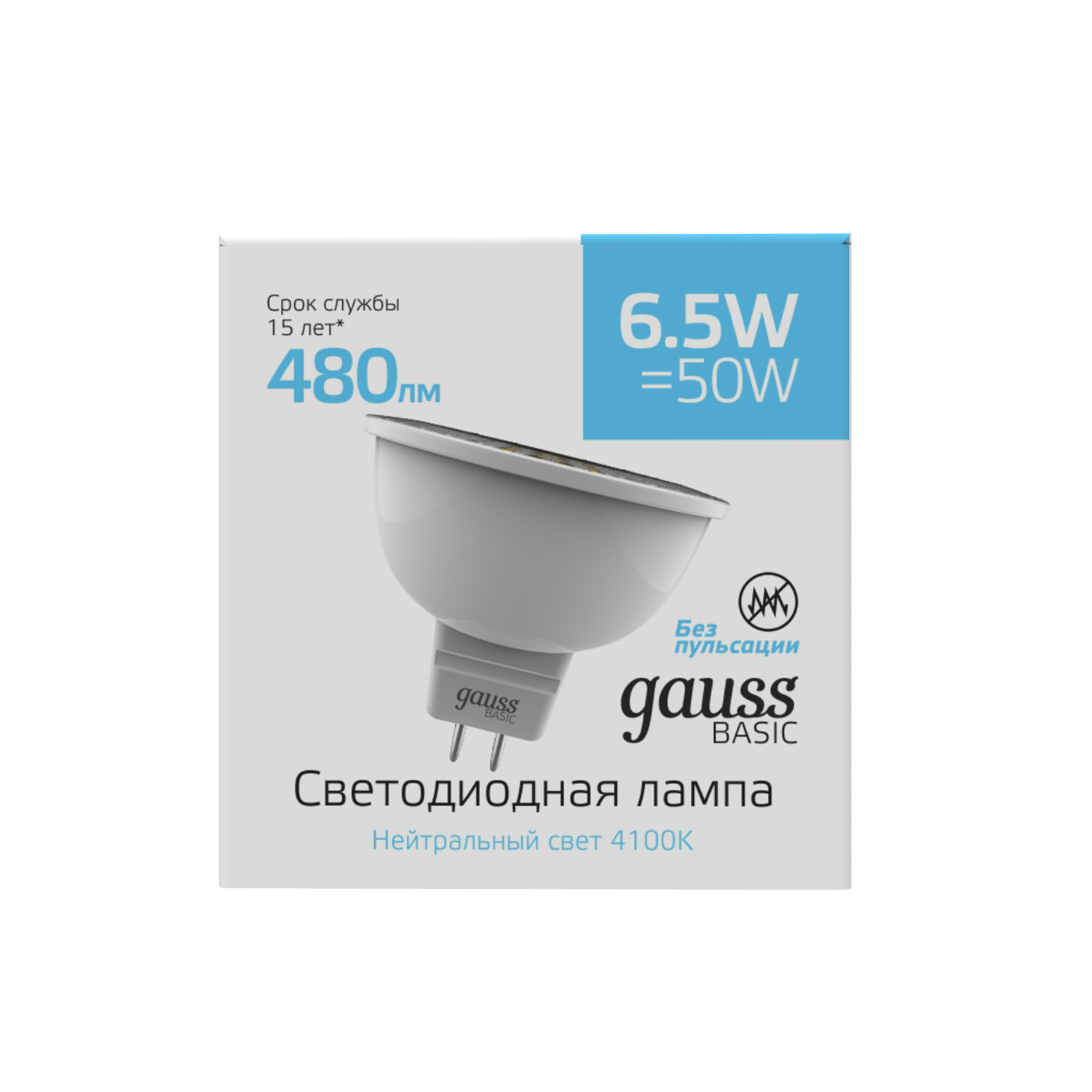 Упаковка светодиодных ламп 5 шт Gauss Basic MR16 6,5W 480lm 4100K GU5.3 LED 1013527
