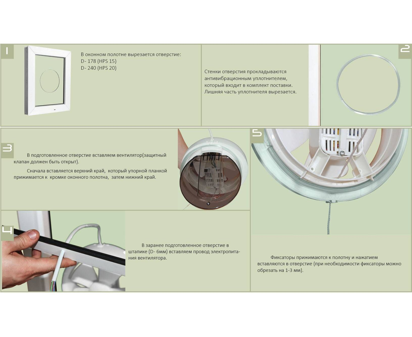 Осевой оконный вентилятор с обратным клапаном для вытяжной вентиляции.