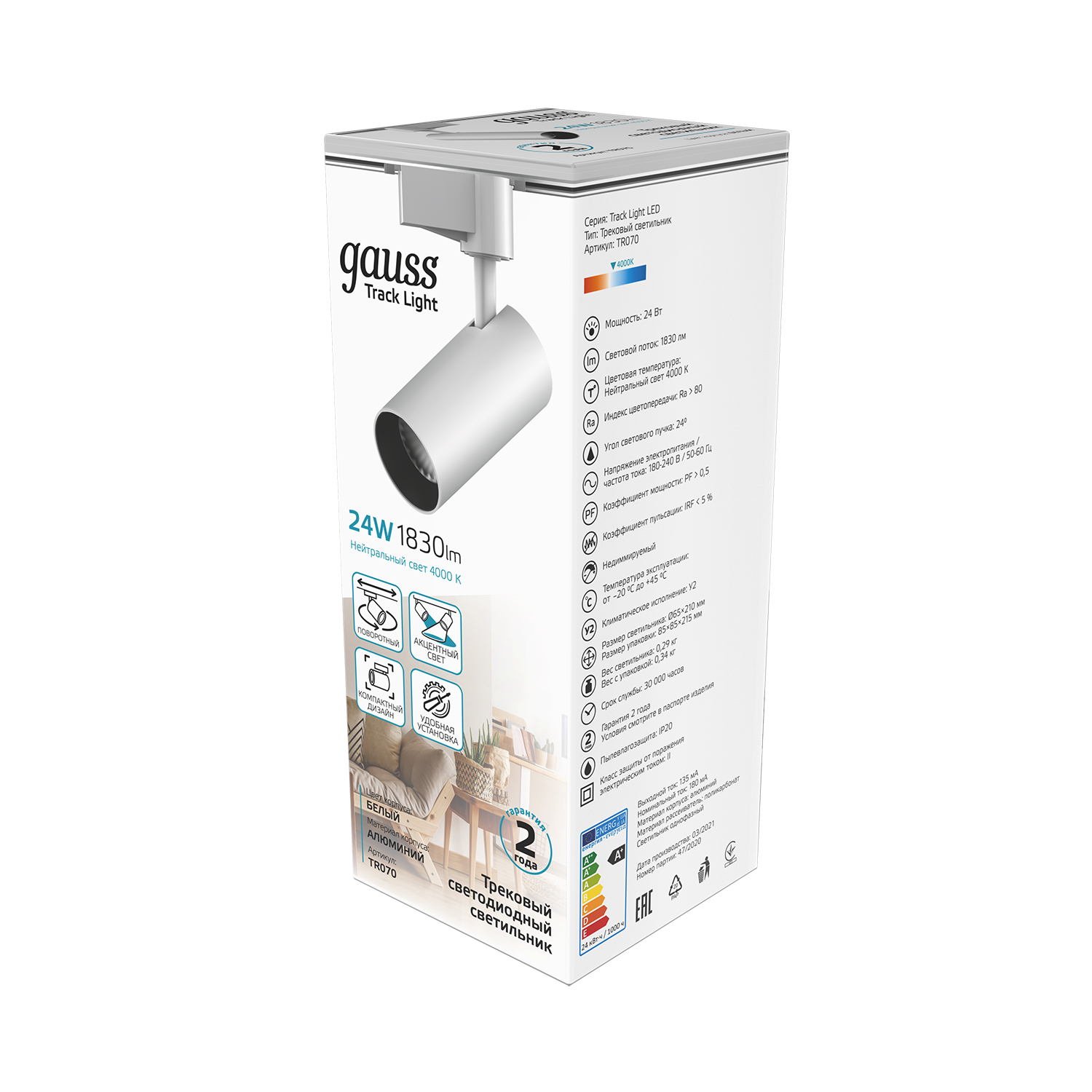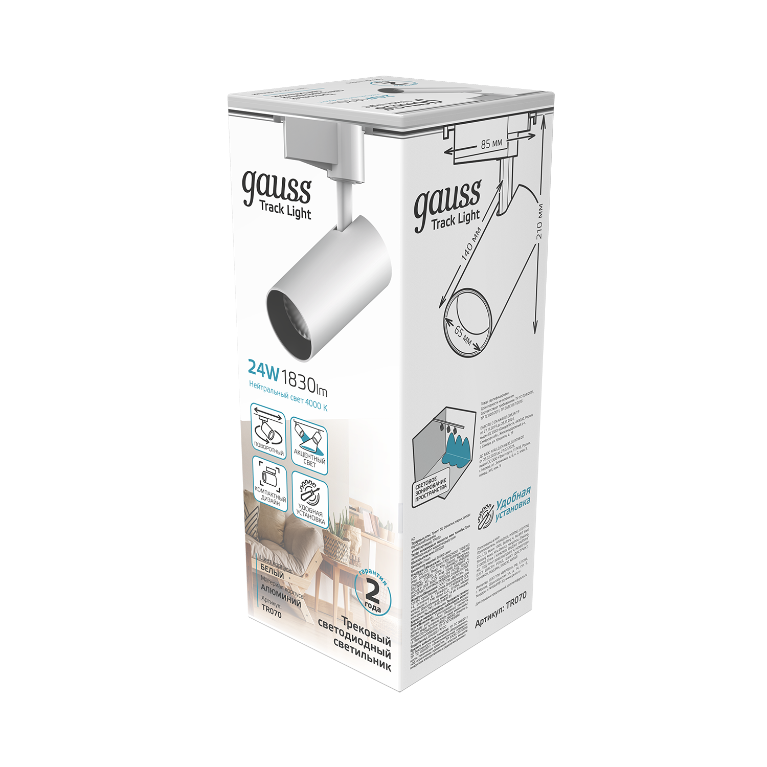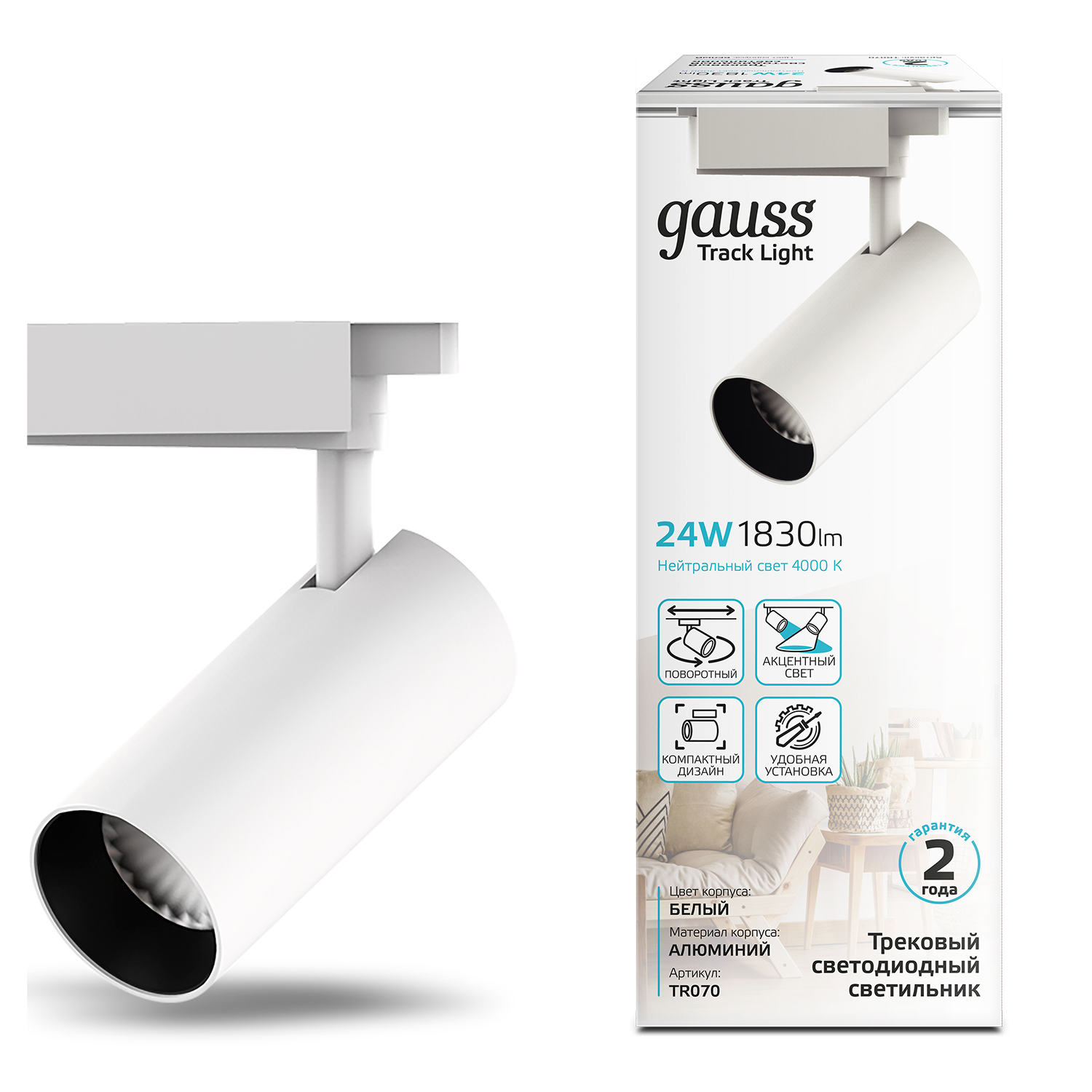 Трековый светильник Gauss 24W 1830lm 4000K 180-240V TR070
