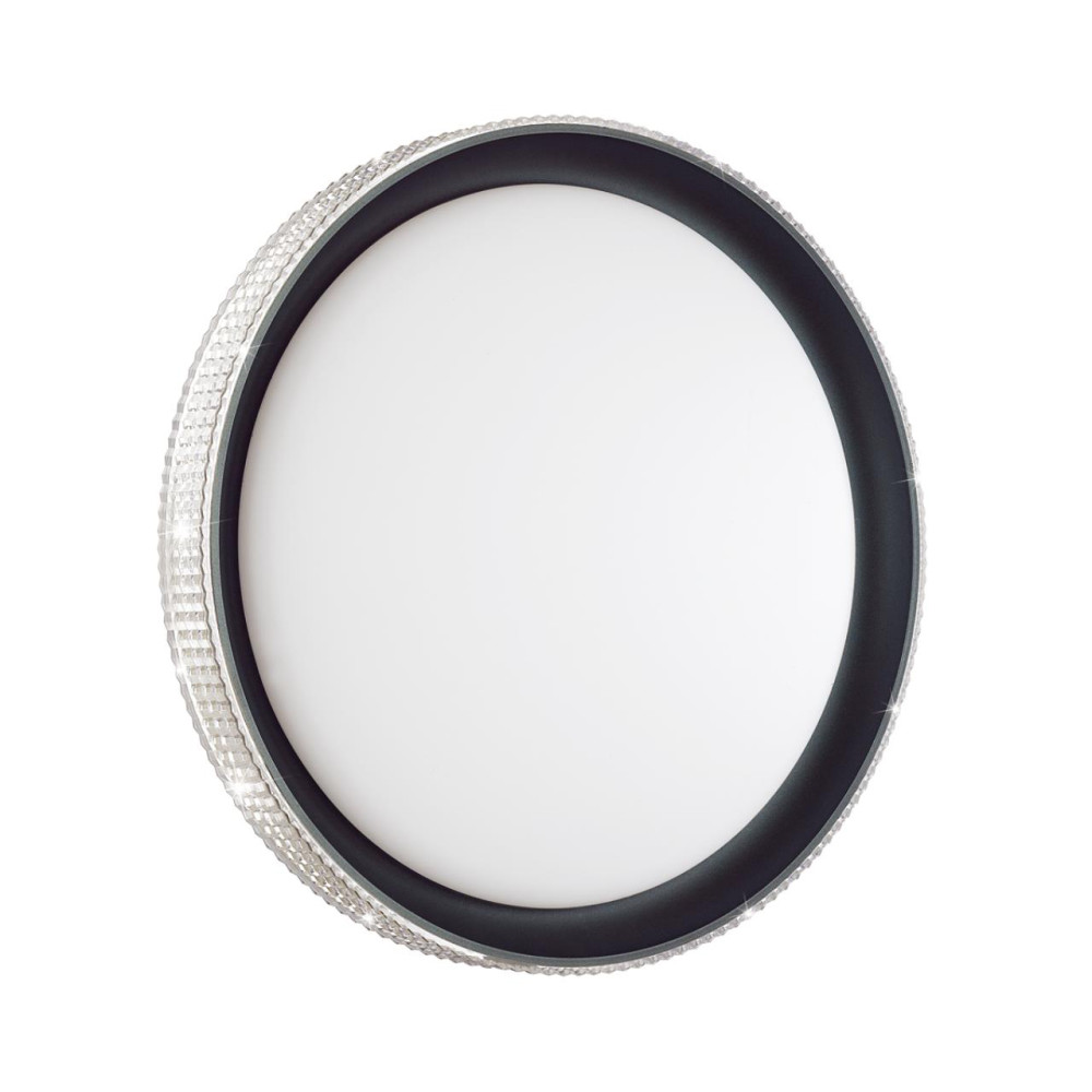 Светильник 3049/DL линии SHINY состоит из металлического основания (базы) и пластикового рассеивателя. Материал рассеивателя - качественный пластик белого цвета с матовой поверхностью, обеспечивающий светильнику равномерное рассеивание и хорошее светопропускание. Форма плафона: круглая, декорирована ободом под хрусталь черного цвета. Степень защиты IP43 позволяет использовать светильник в определенных зонах влажных помещений. В комплект входит заменяемый LED модуль с линзами, мощностью 48Вт, которая соответствует лампе накаливания 350Вт. А также пульт ДУ, с помощью которого осуществляется плавное изменение цветовой температуры 3000-6000К, изменение яркости, переход в режим переключения теплого/белого/холодного/ночного света. Светильник имеет функцию "память"