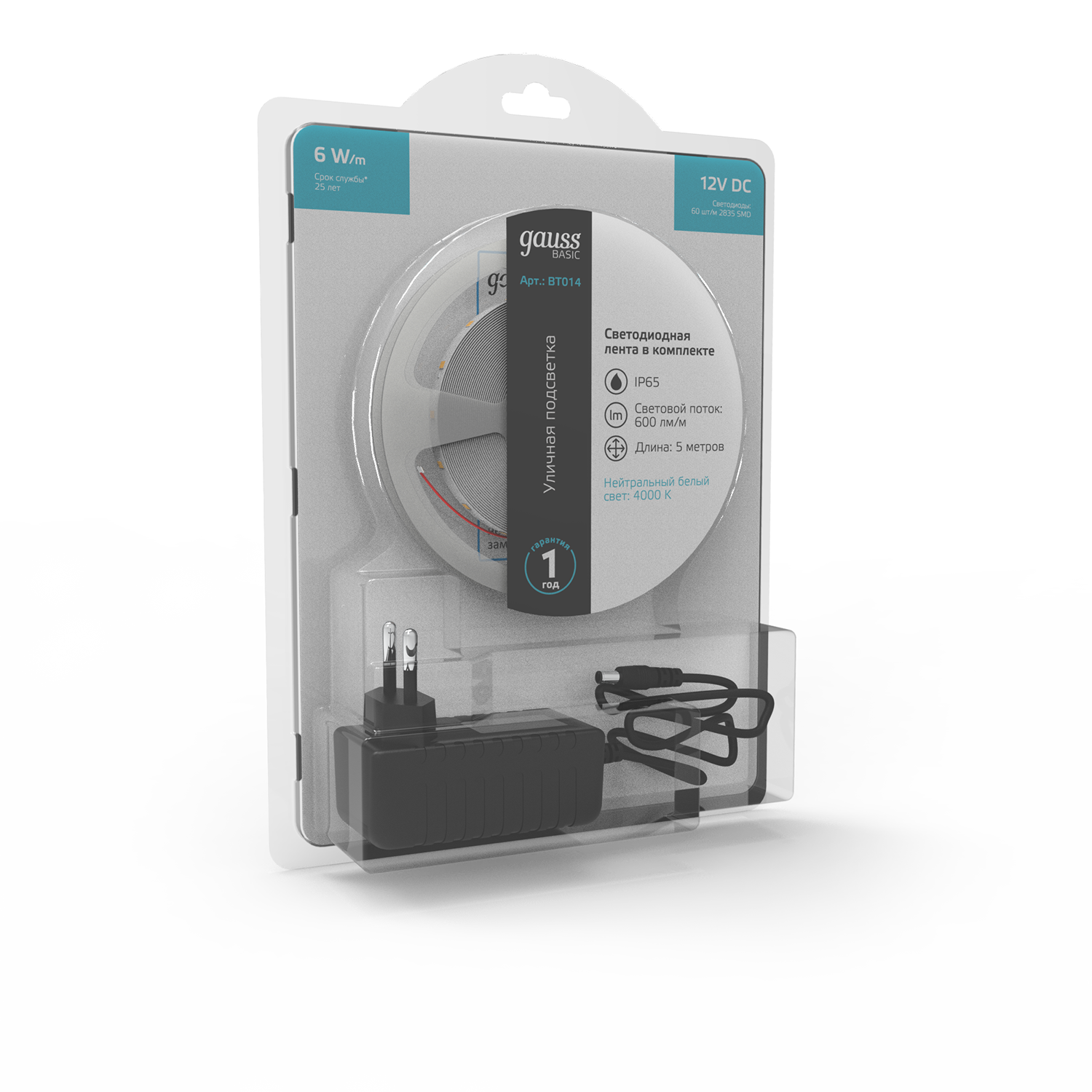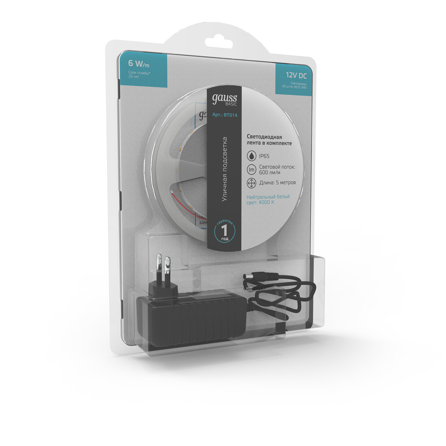 Лента Gauss Basic в комплекте LED 2835/60 12V 6W/m 600lm/m 4000K 8mm IP65 5м 1/50 BT014