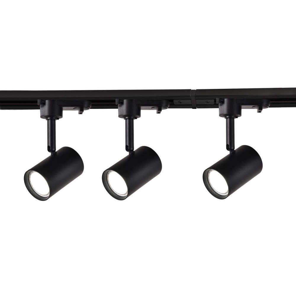 каркас черного цвета, в комплект трековой системы входят: 3 спота, шинопровод (2х1м) и коннектор, угол поворота до 170°, лампу GU10 можно менять