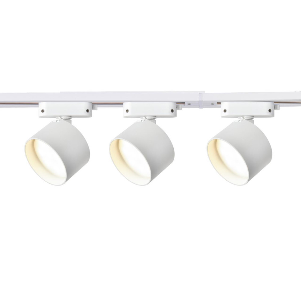 каркас белого цвета, в комплект трековой системы входят: 3 спота, шинопровод (2х1м) и коннектор, угол поворота до 120°