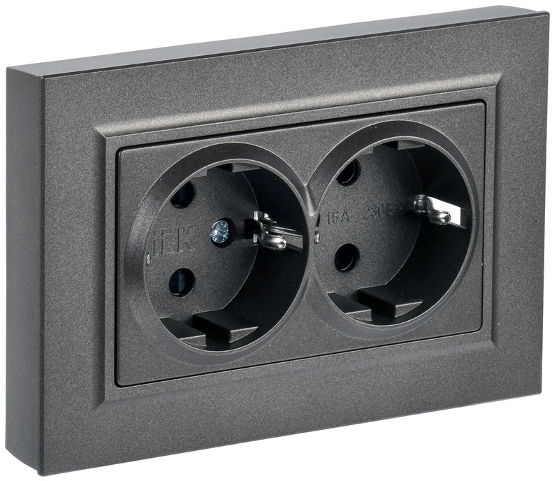Розетка двойная с заземлением и защитными шторками IEK Brite РСш12-3-БрТБ бронза BR-R24-16-K45-F