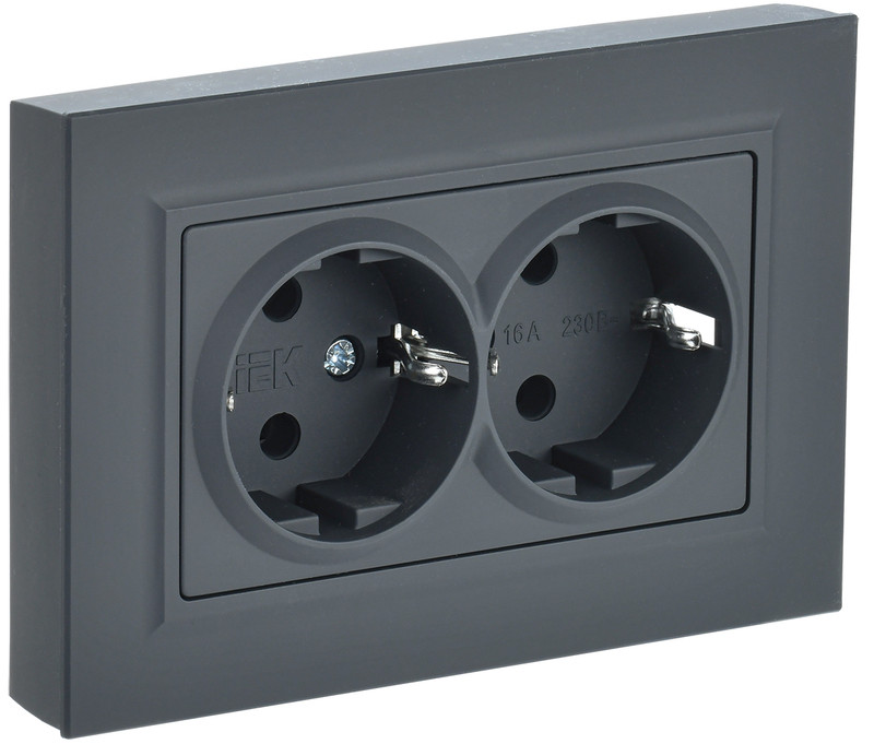 Розетка двойная с заземлением IEK Brite РС12-3-БрГ графит BR-R21-16-K53-F