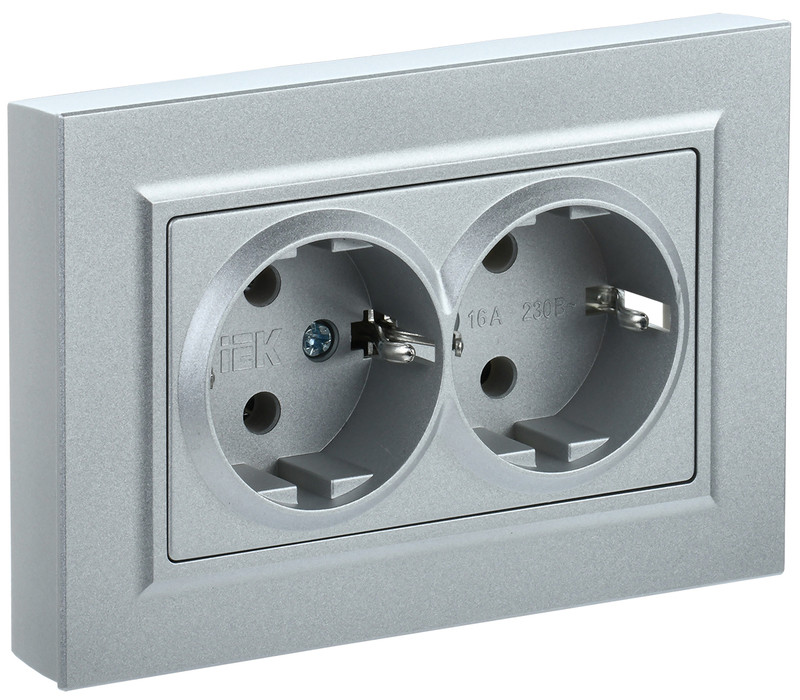 Розетка двойная с заземлением и защитными шторками IEK Brite РСш12-3-БрС сталь BR-R24-16-K46-F