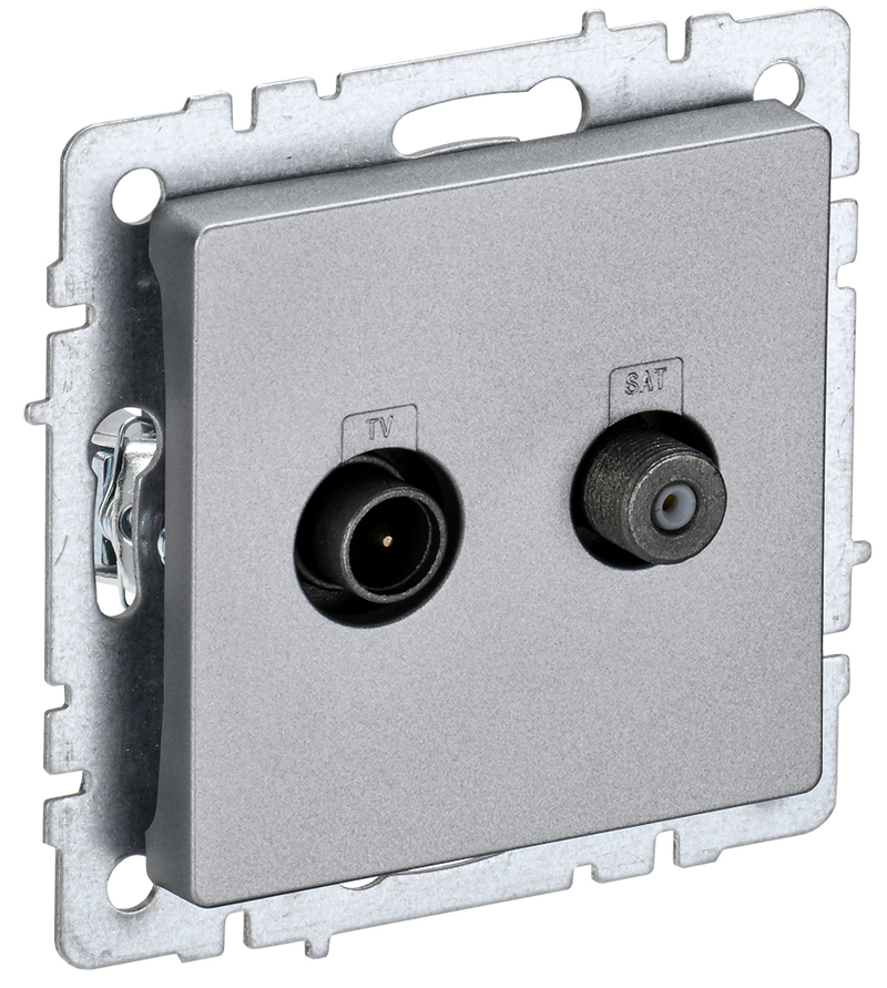 Розетка двойная TV+SAT IEK Brite РТВ/РСп12-БрА алюминий BR-AF20-O-K47