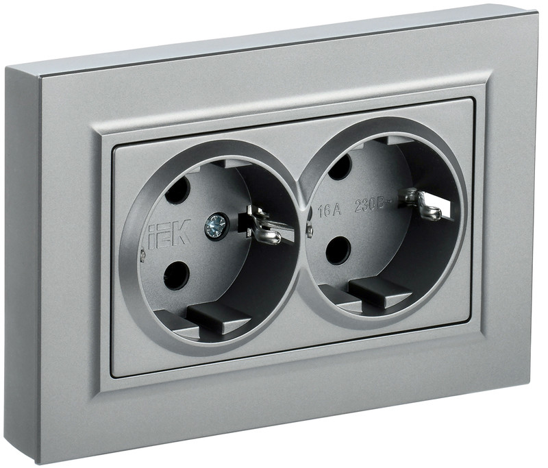 Розетка двойная с заземлением IEK Brite РС12-3-БрА алюминий BR-R21-16-K47-F