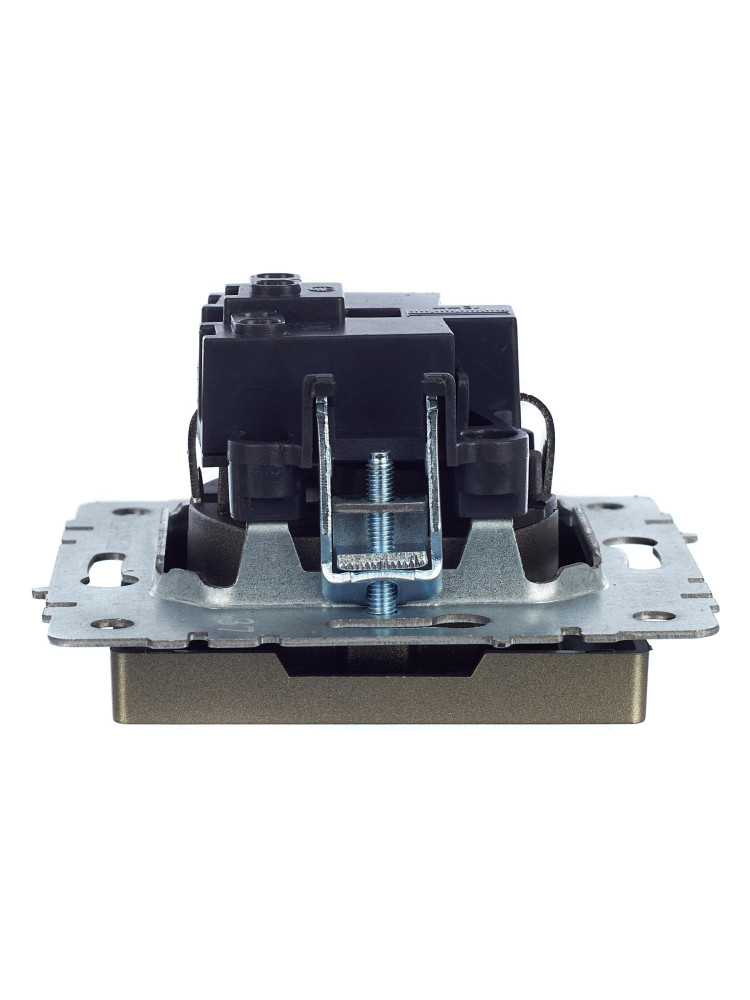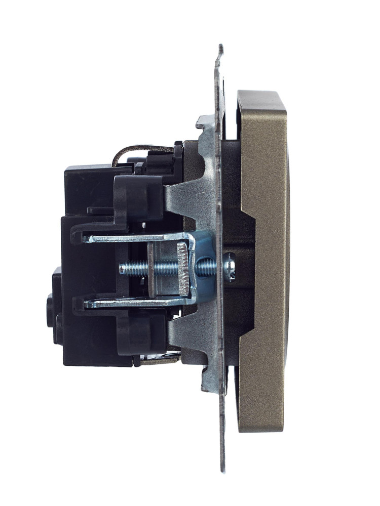 Розетка с заземлением и защитными шторками USB IEK Brite A+A 2,1А РЮш10-1-БрШ шампань BR-R14-16-U21-D21-K37