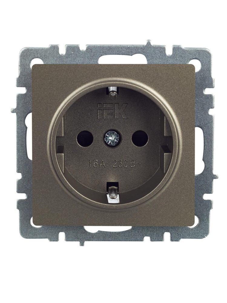 Розетка с заземлением и защитными шторками IEK Brite РС14-1-0-БрШ шампань BR-R14-16-K37