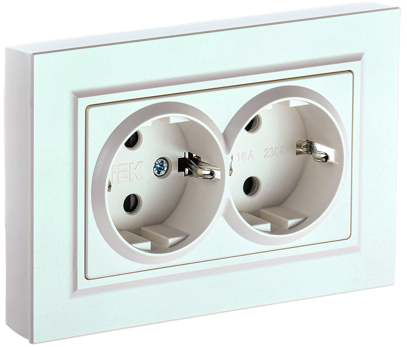 Розетка двойная с заземлением и защитными шторками IEK Brite РСш12-3-БрЖ жемчуг BR-R24-16-K36-F