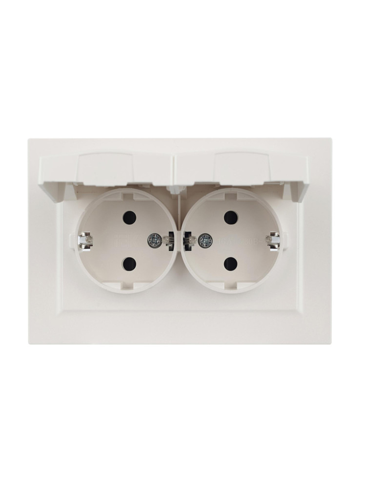 Розетка двойная с заземлением и защитными шторками IEK Brite РСш12-3-БрЖ жемчуг BR-R24-16-K36-F