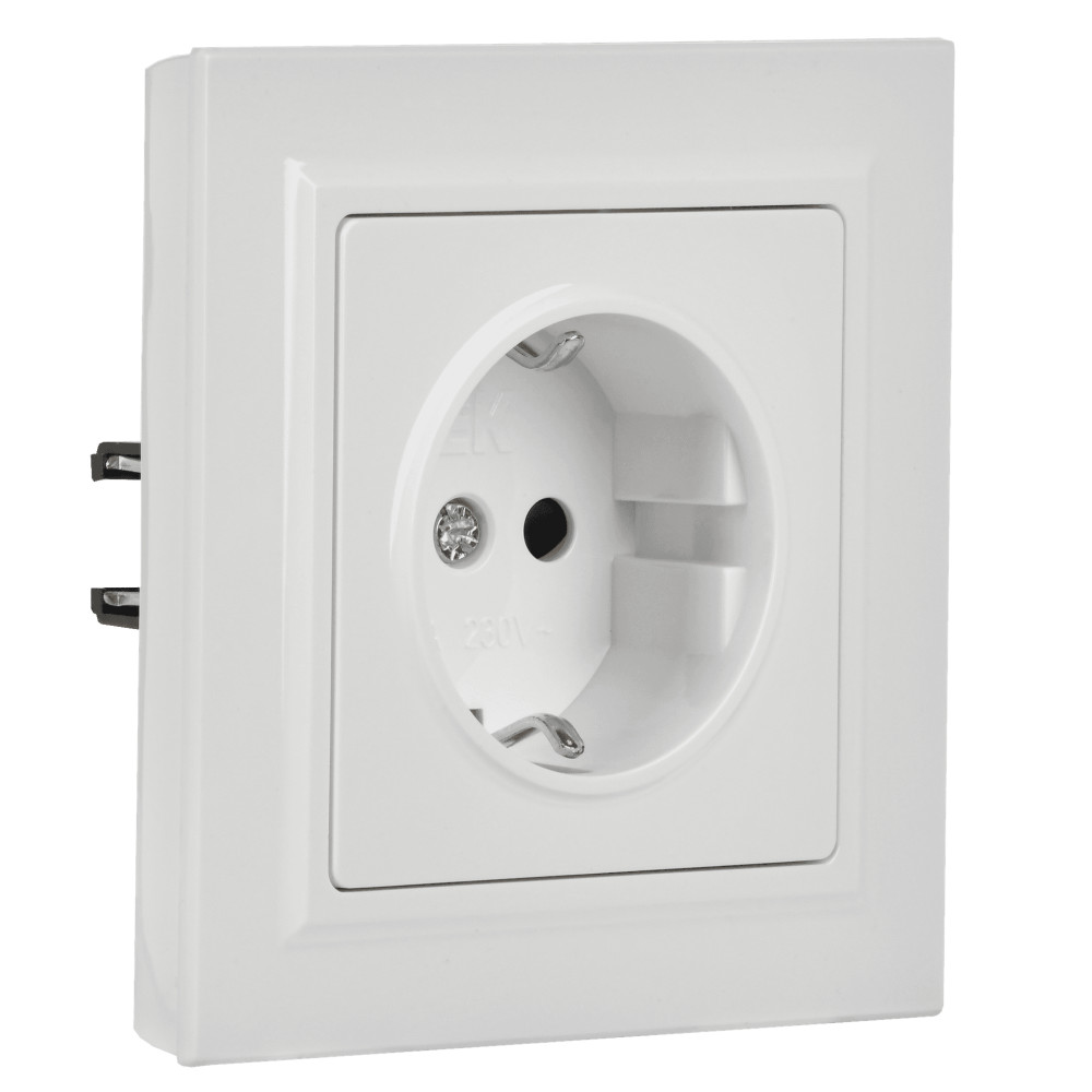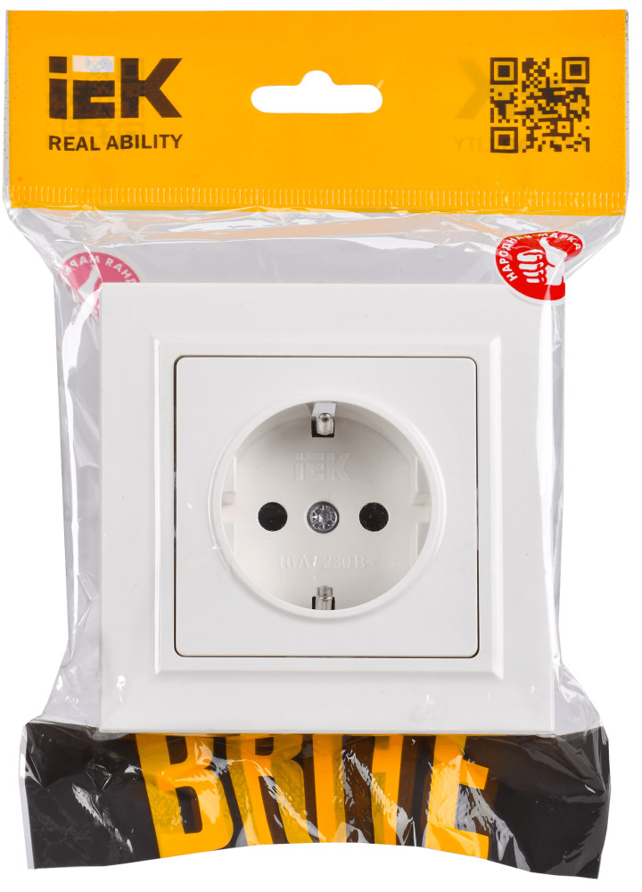 Розетка с заземлением и защитными шторками IEK Brite РСР14-1-0-БрБ белый BR-R14-16-K01-F