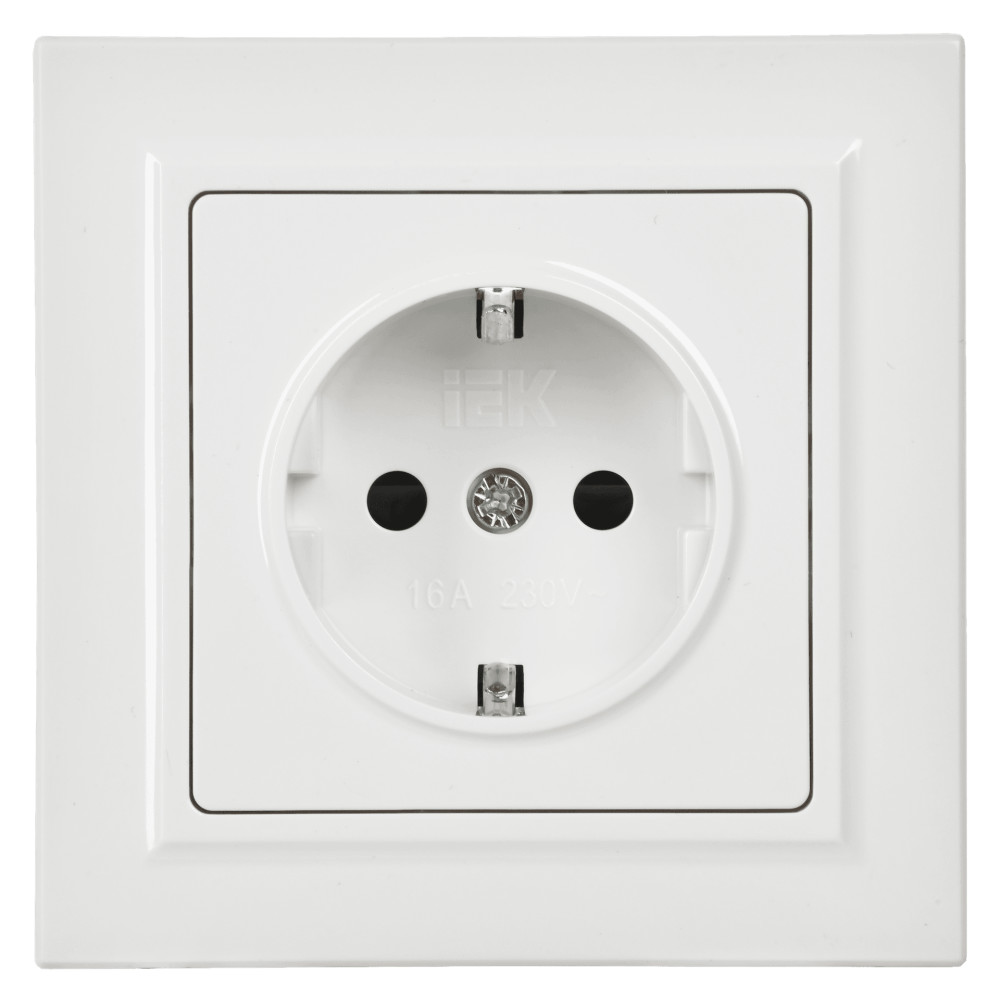 Розетка с заземлением и защитными шторками IEK Brite РС14-1-0-БрБ белый BR-R14-16-K01