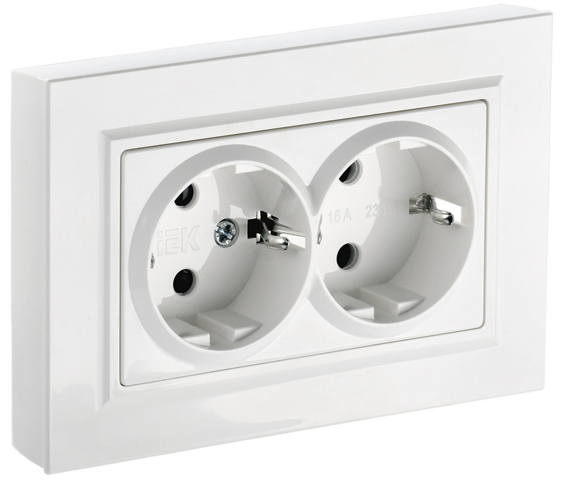 Розетка двойная с заземлением IEK Brite РС12-3-БрБ белый BR-R21-16-K01-F