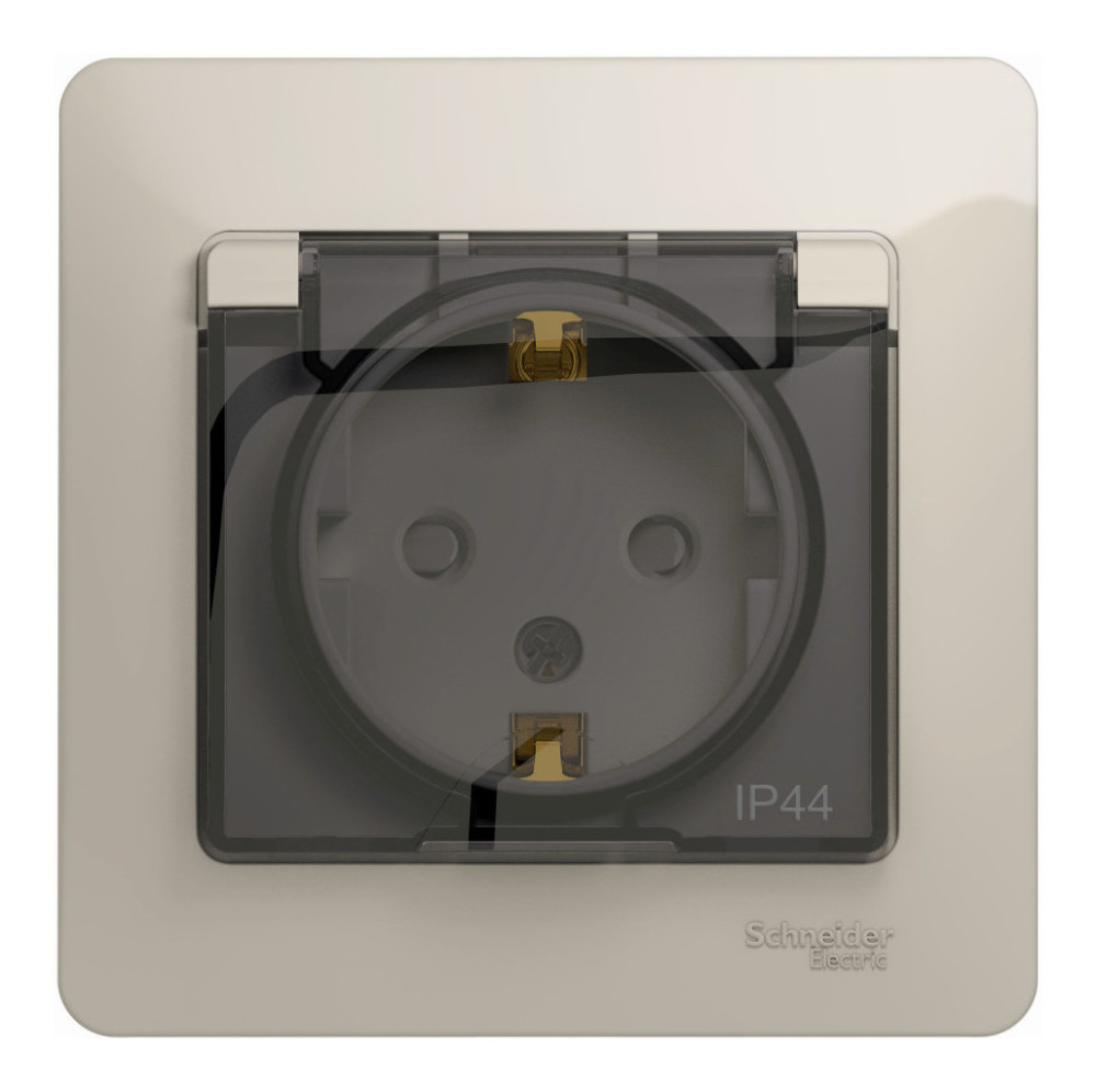 Розетка Schneider Electric Glossa (в сборе, цвет молочный) одинарная с заземлением, шторками и крышкой подходит для сетей 250 В, на ток 16 А.- Изделие со степенью защиты IP44 обеспечит безопасность использования в ванной и на кухне.- Заземляющий контакт обеспечивает дополнительную защиту от удара электрическим током. При наличии заземления электрический потенциал уходит в землю, защищая человека.- Выполнен из материала PС+ASA, стойкого к УФ-излучению и появлению царапин
