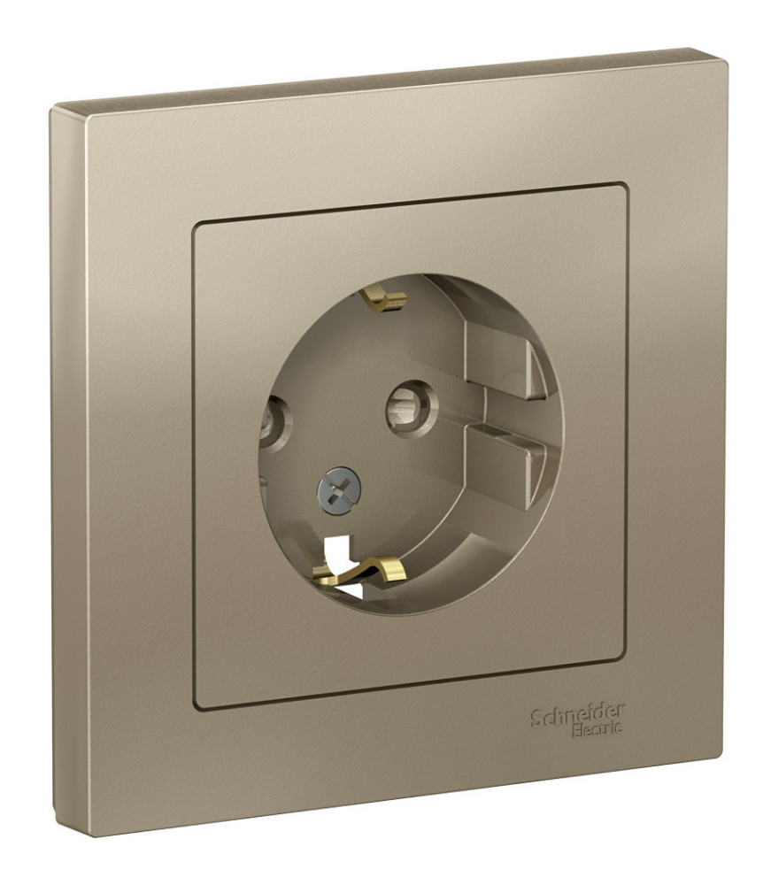 Розетка Schneider Electric AtlasDesign (в сборе, цвет шампань) одинарная с заземлением и без шторок подходит для сетей 250 В, на ток 16 А.- Заземляющий контакт обеспечивает дополнительную защиту от удара электрическим током. При наличии заземления электрический потенциал уходит в землю, защищая человека.- Лицевые детали из качественного ABS-пластика, устойчивого к царапинам и УФ-излучению.- Изделие поставляется в комплекте с рамкой того же цвета