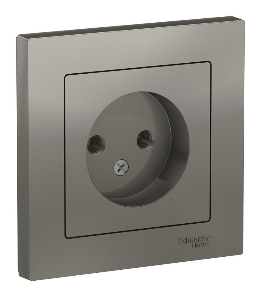 Розетка Schneider Electric AtlasDesign (в сборе, цвет сталь) одинарная без заземления и без шторок подходит для сетей 250 В, на ток 16 А.- Лицевые детали из качественного ABS-пластика, устойчивого к царапинам и УФ-излучению.- Изделие поставляется в комплекте с рамкой того же цвета